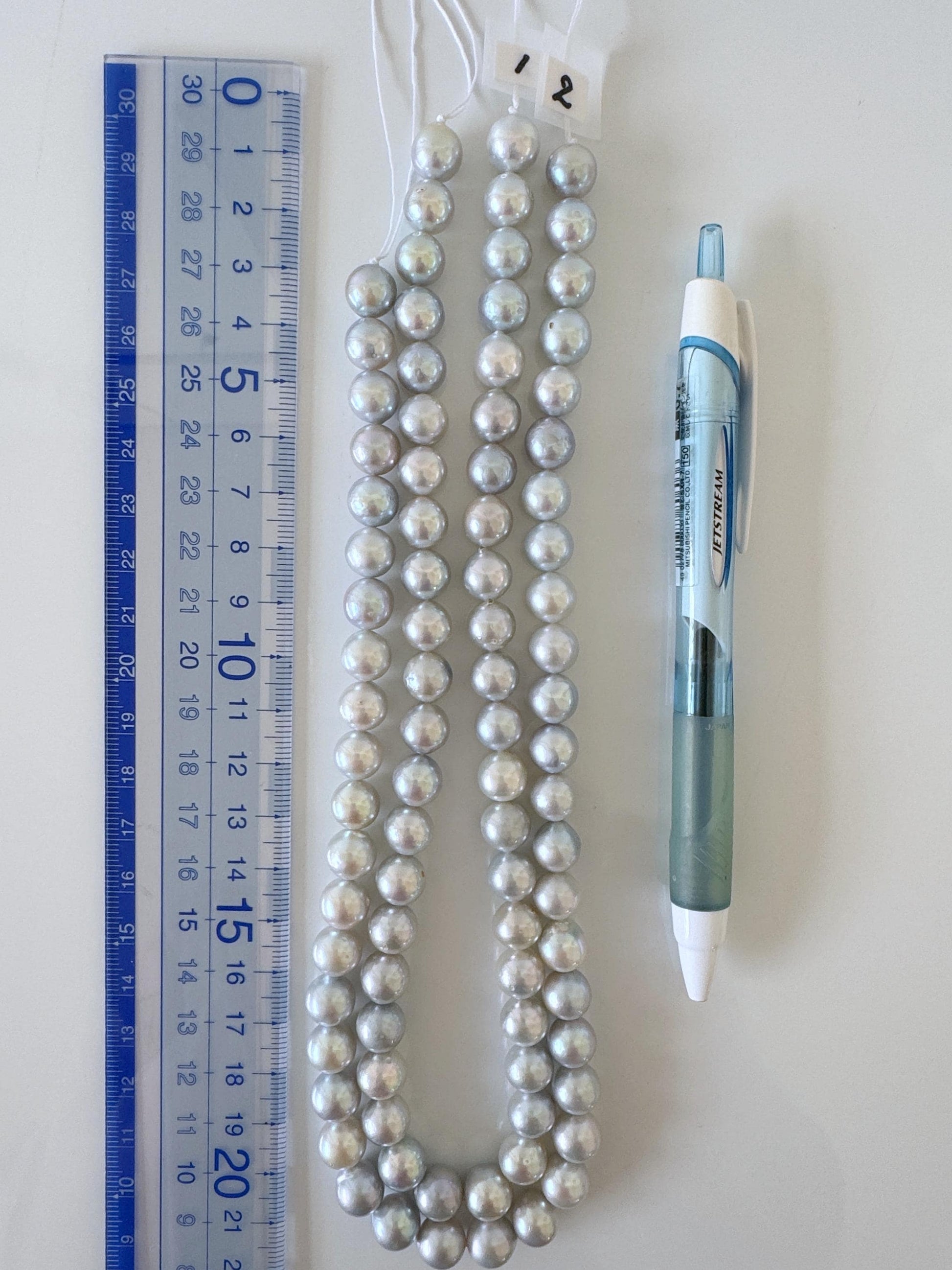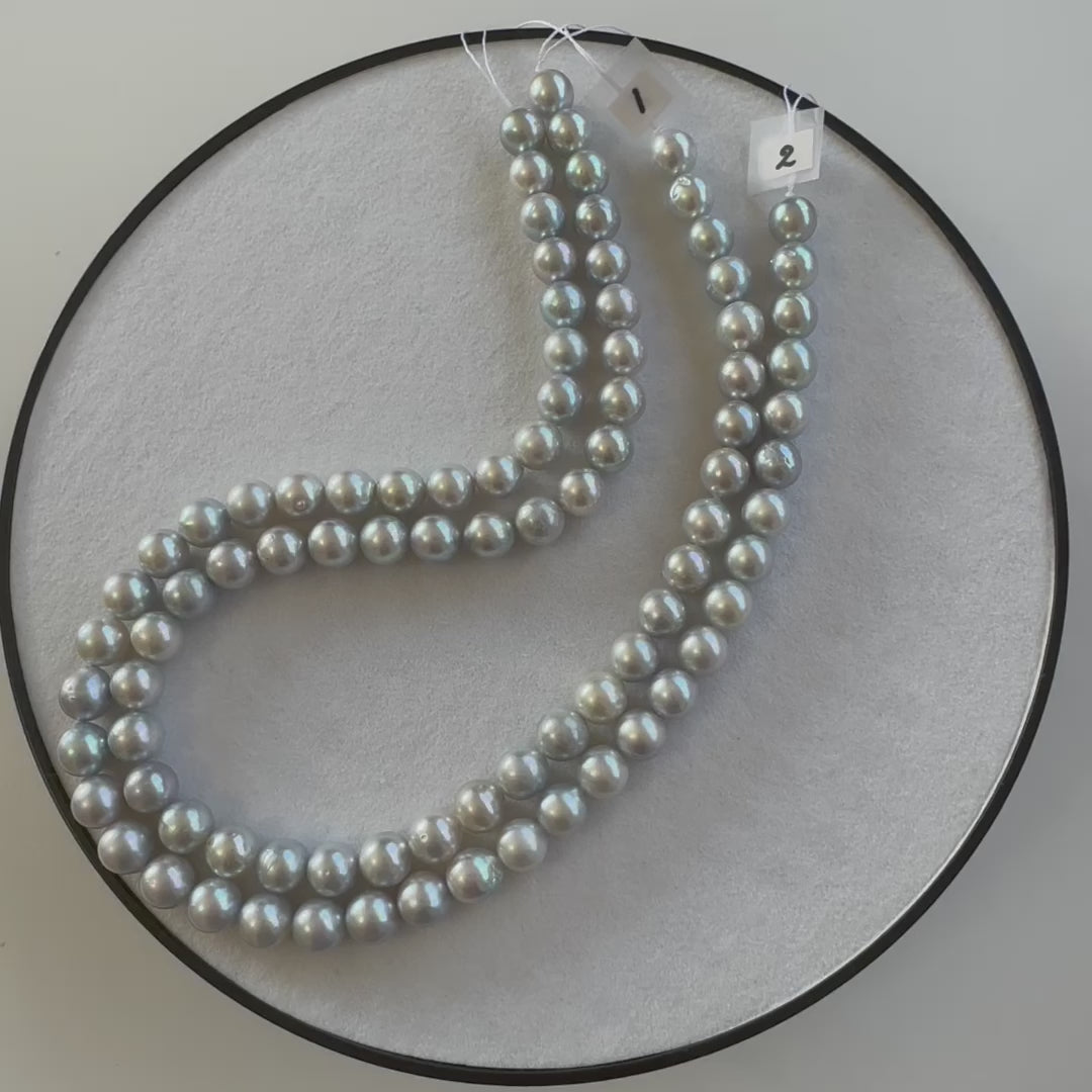 9-9.5.5mm Japanese Akoya Pearl Beads, Natural Blue/Silver color pearl, Genuine Akoya Pearl, Full Strand 40cm , 15.7", Salt water pearl