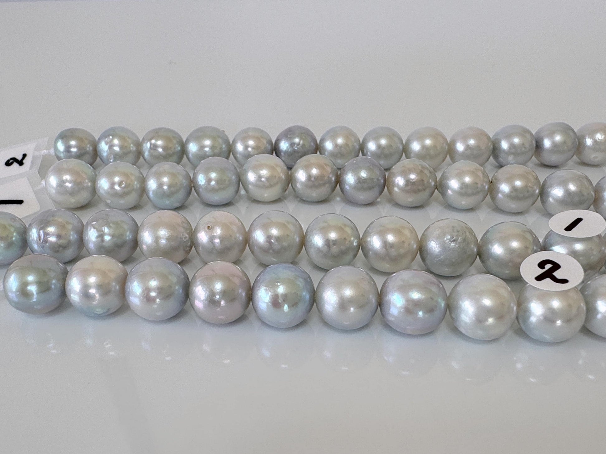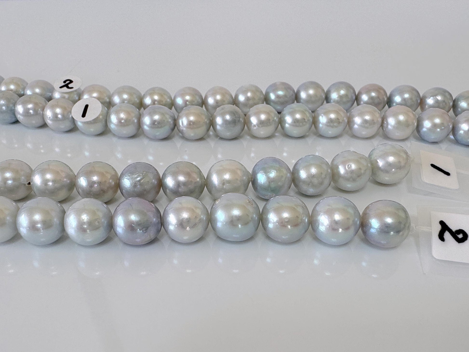9-9.5mm Japanese Akoya Pearl Beads, Natural Blue/Silver color pearl, Genuine Akoya Pearl, Full Strand 40cm , 15.7", Salt water pearl