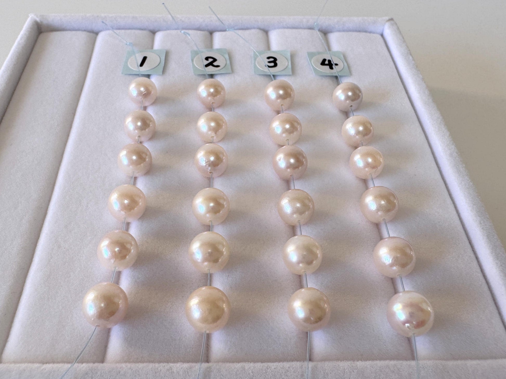 Japanese White/Pink Akoya Pearl Beads, 6.5-7mm, Mini Strand, Short Strand, 6 Pieces, Genuine Akoya Pearl, Cultured in Sea Water