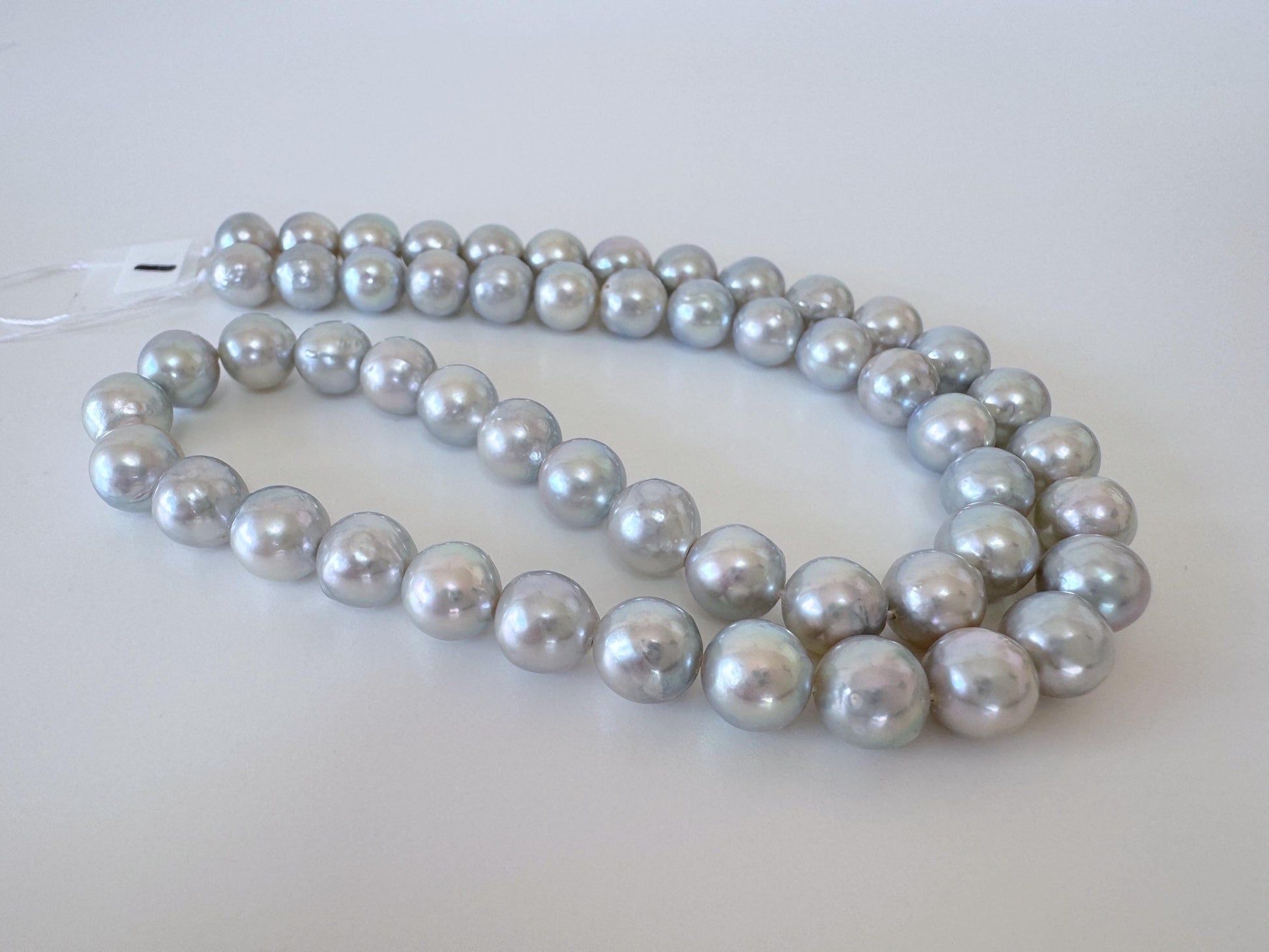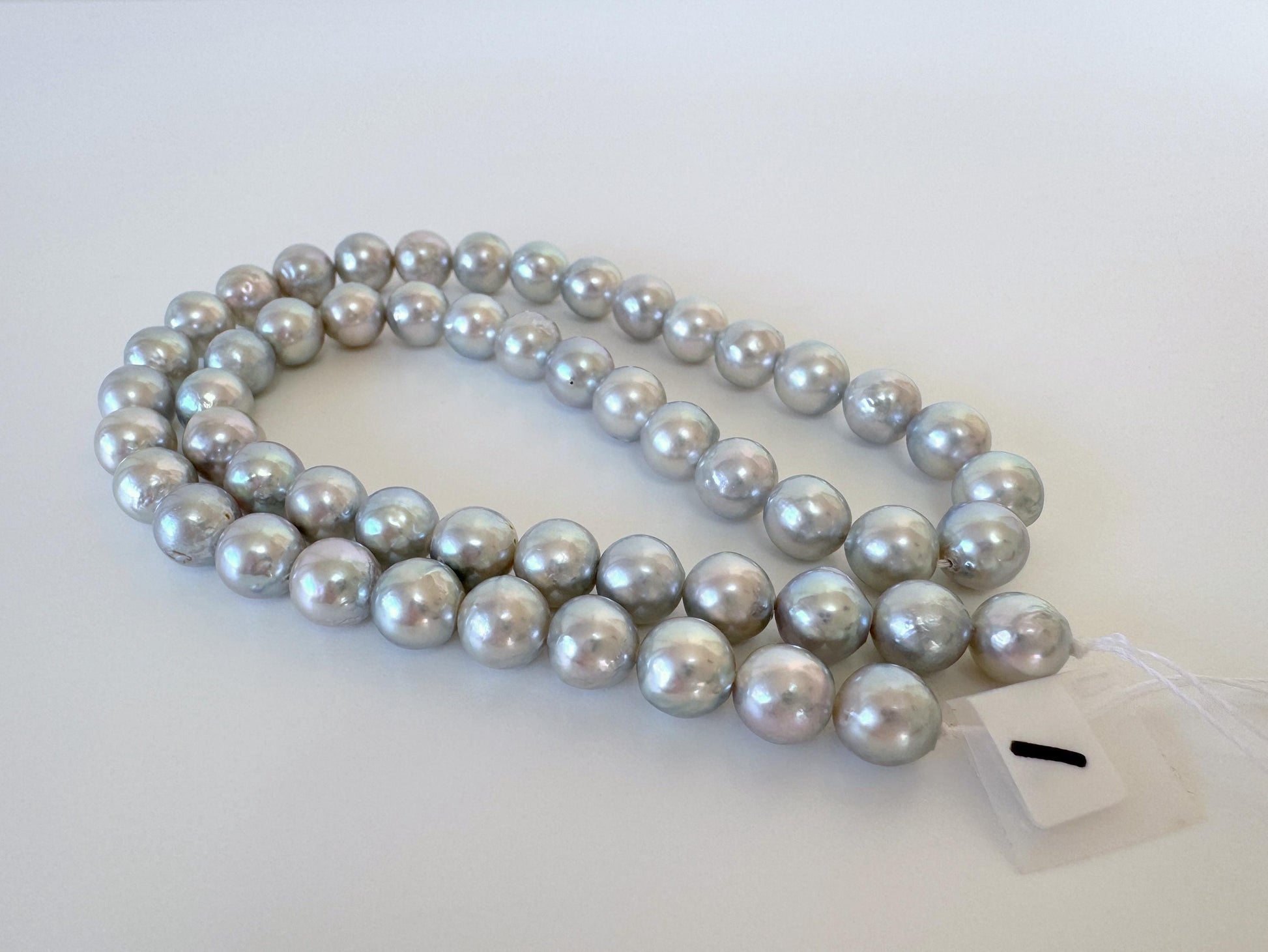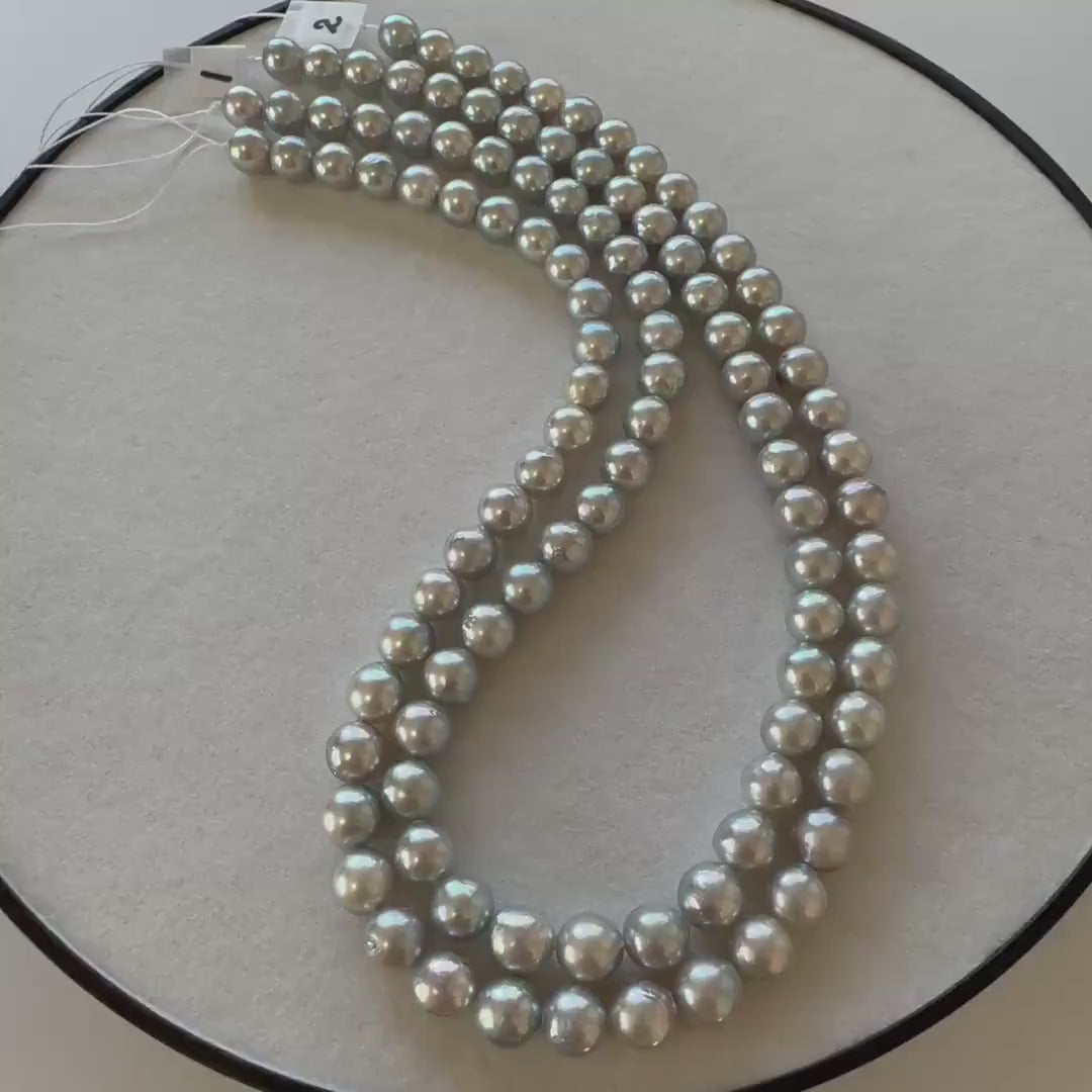 This full strand of genuine Akoya pearl beads, cultured in saltwater and sourced directly from Iseshima, showcases a stunning natural blue silver hue, perfect for creating your own pearl necklace or jewelry masterpiece.