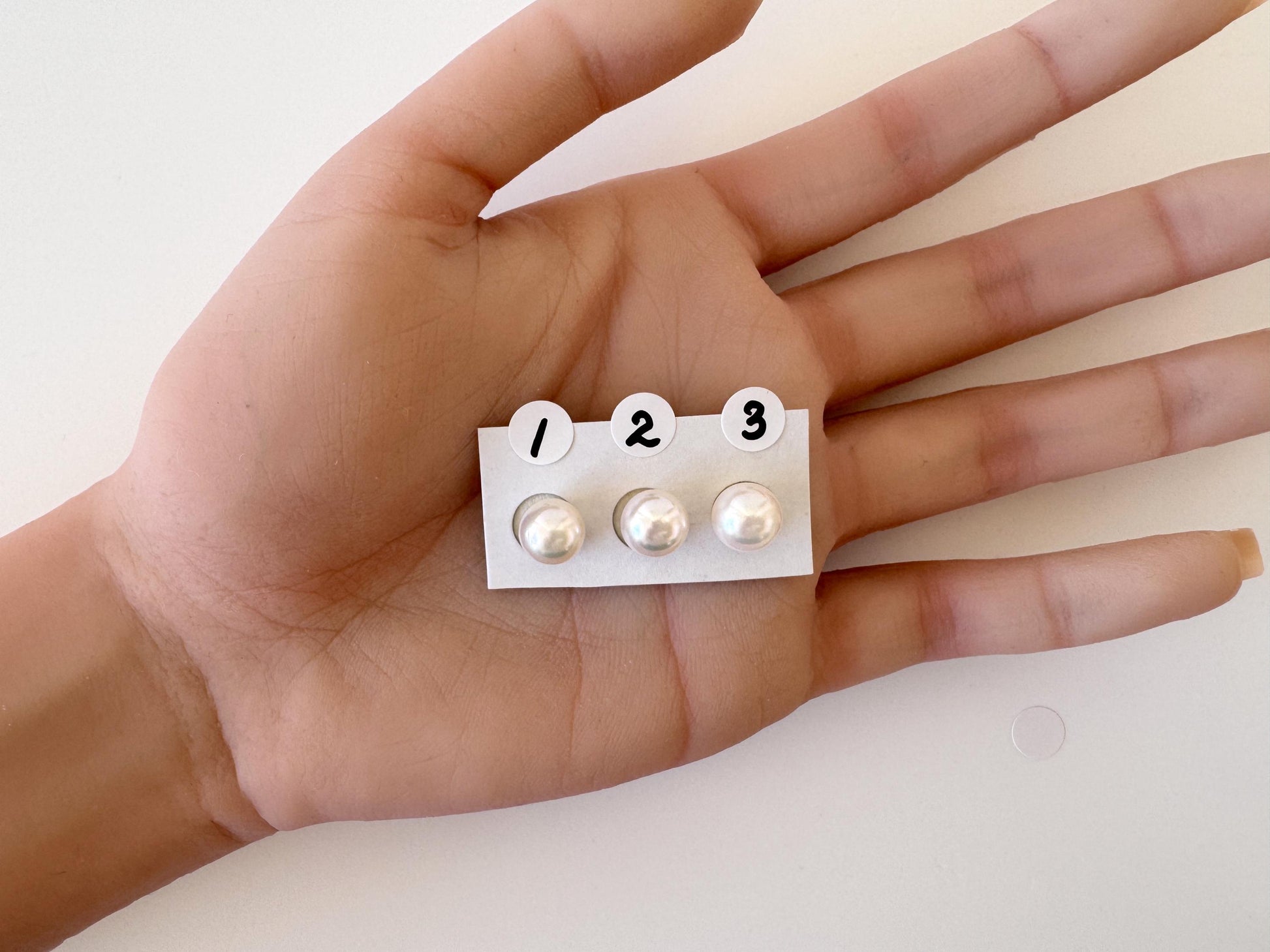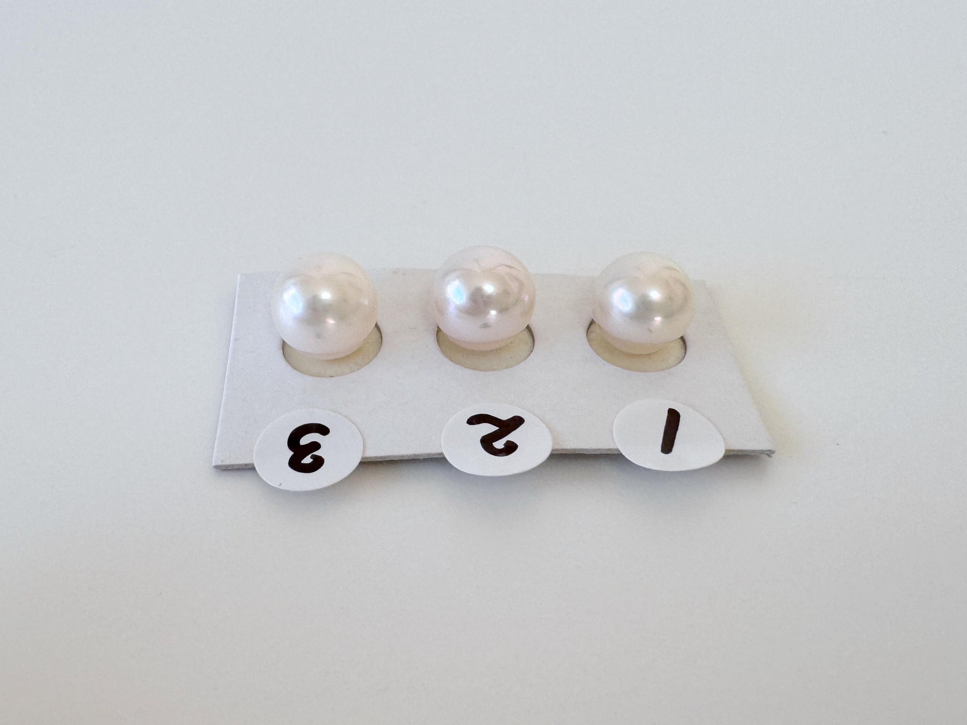 Japanese Akoya Cultured Pearl 8mm up, White/Pink overtone Color, Half-Drilled Round loose, Price per Piece, Salt water pearl