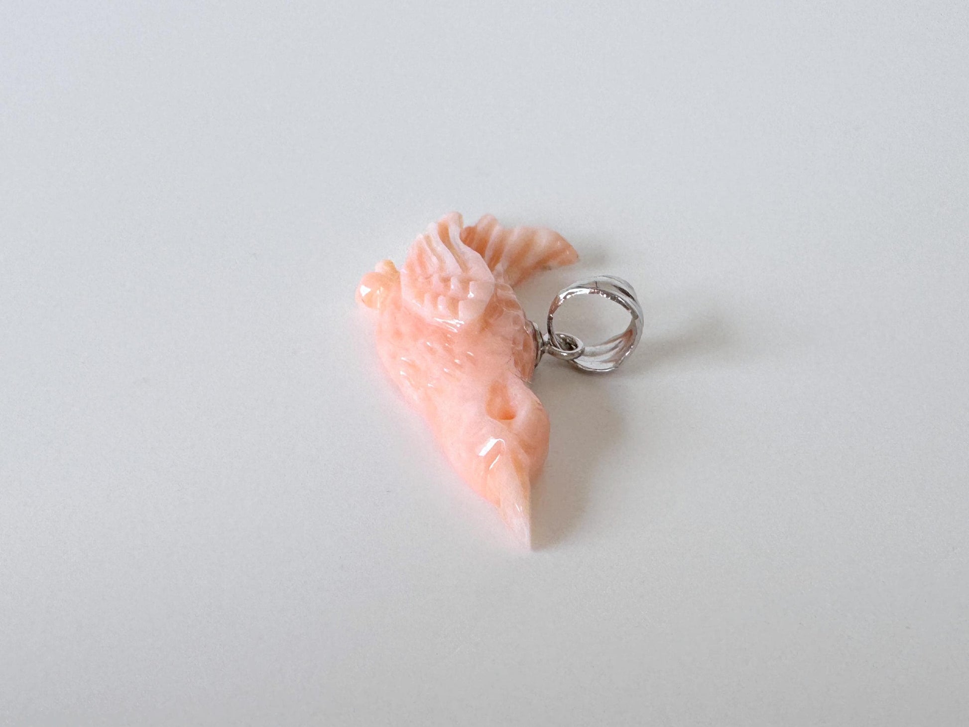 Natural Deep Sea Coral Bird Carving Pendant, Natural Pink Color Coral, Silver (Rhodium-plated) Bail, Hand Carved