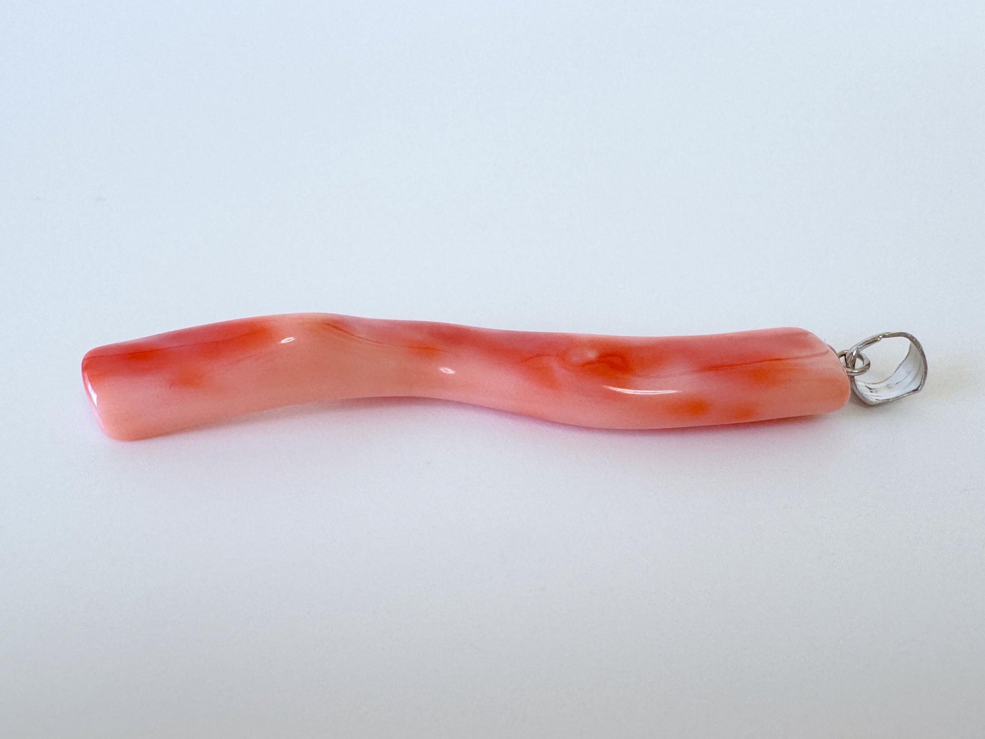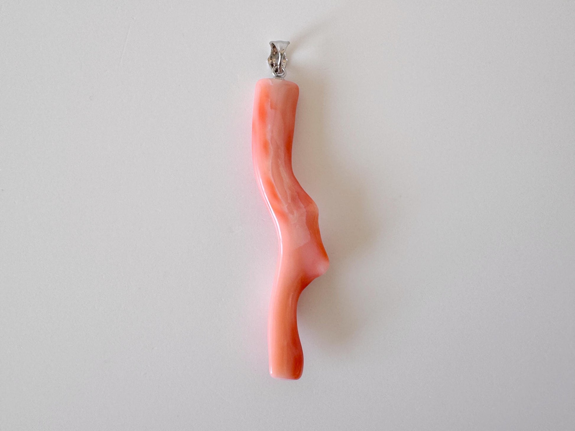 Natural Deep Sea Coral Branch Pendant, 58mm, Natural Orange/Pink color coral branch pendant, Silver (Rhodium-Plated) bail