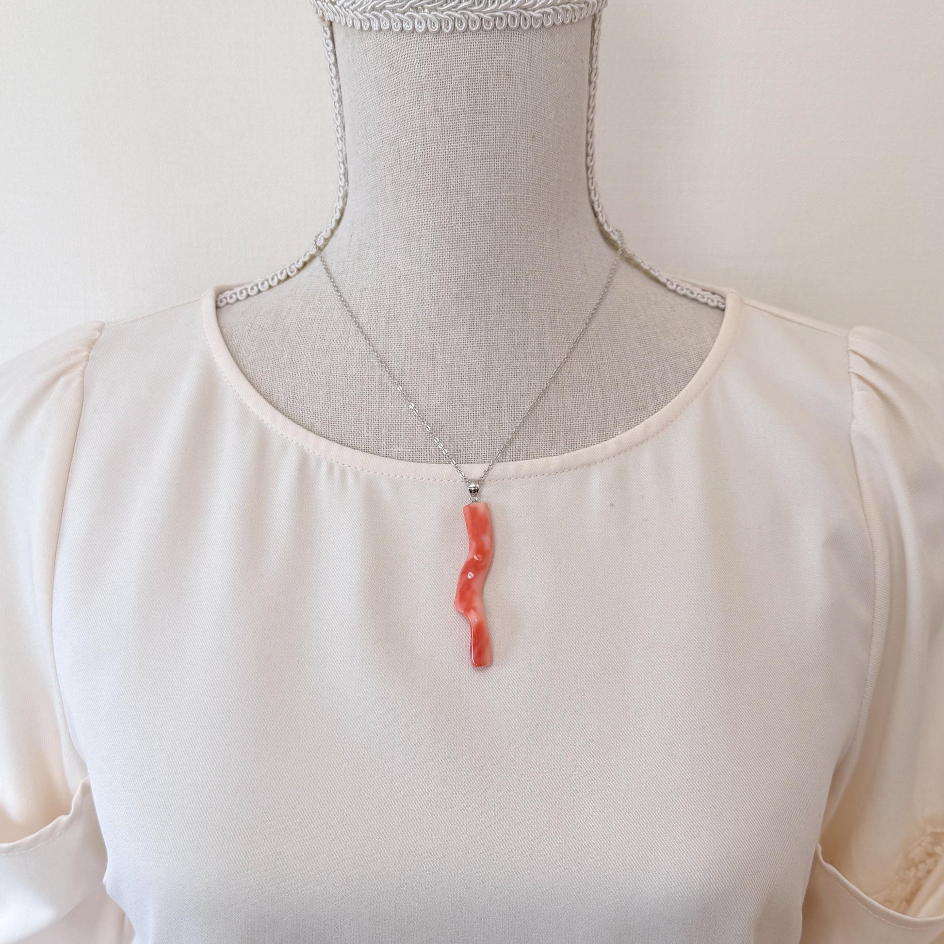Coral Branch Pendant - Natural Deep Sea Coral Jewelry - Orange Pink Branch, Rhodium-Plated Silver Bail, 58mm Length