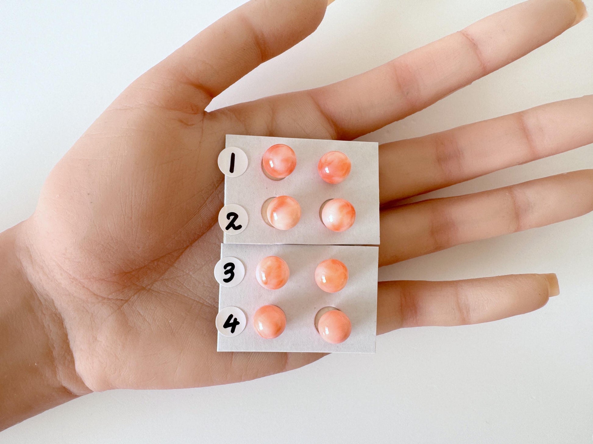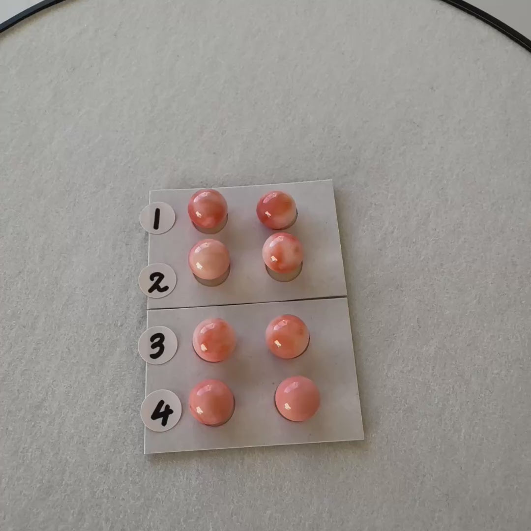 8.5-9mm Half Drilled Natural Deep Sea Coral Round Loose, Pink, Orange, White coral, for earring sets, natural color, price per pair
