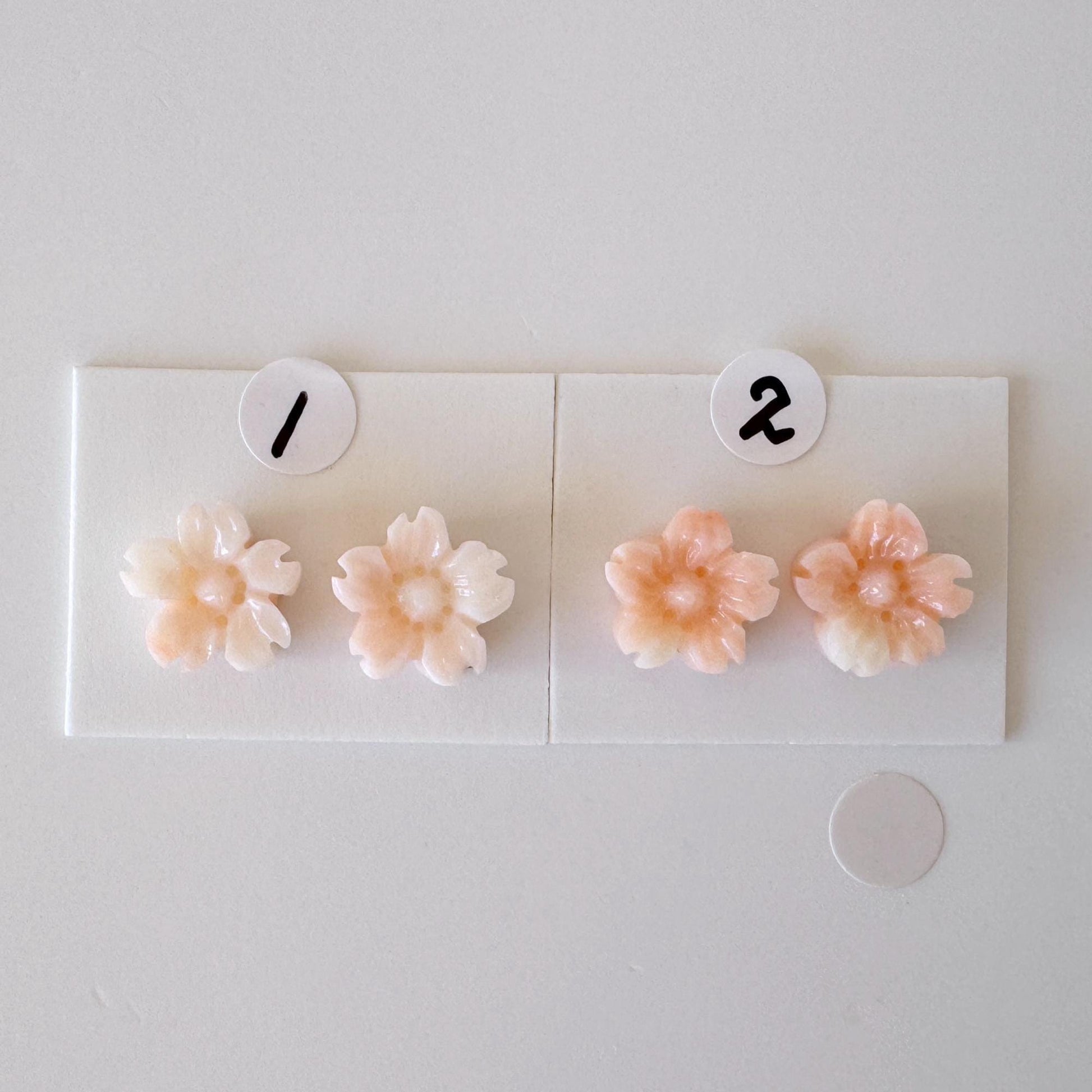 Deep Sea Coral Carving – Natural Pink Sakura Flower, 11mm Pair, Half Drilled Gemstones