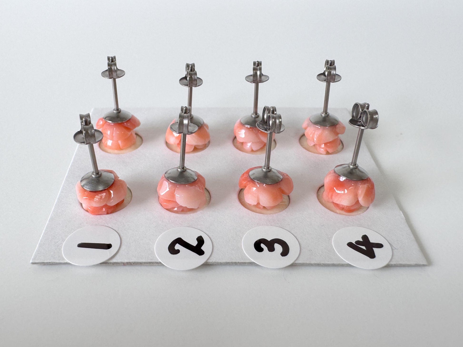 Natural Coral Rose Stud Earrings, Coral studs, Genuine Pink/Orange Color Coral, Titanium, Hand-Carved, Coral Accessory