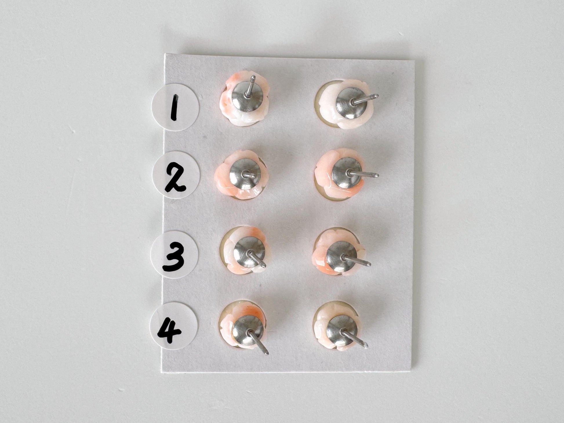Hand-Carved Coral Rose Stud Earrings: Titanium Posts, Pink & White