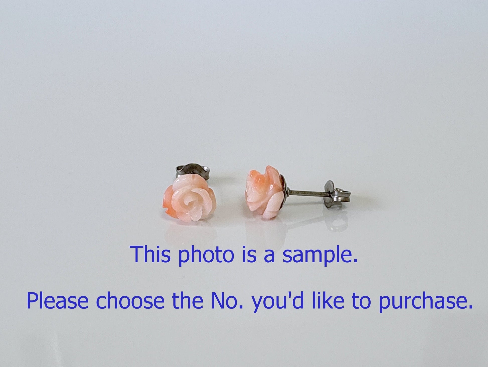 Natural Coral Rose Stud Earrings, Coral studs, Genuine Pink/White Color Coral, Titanium, Hand-Carved, Coral Accessory