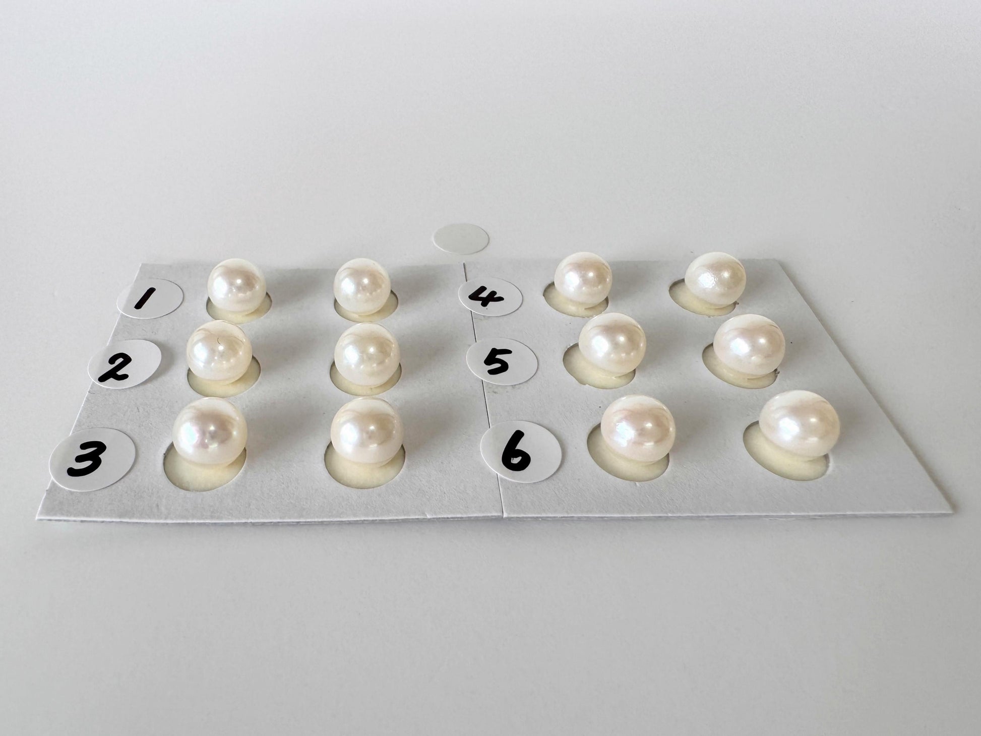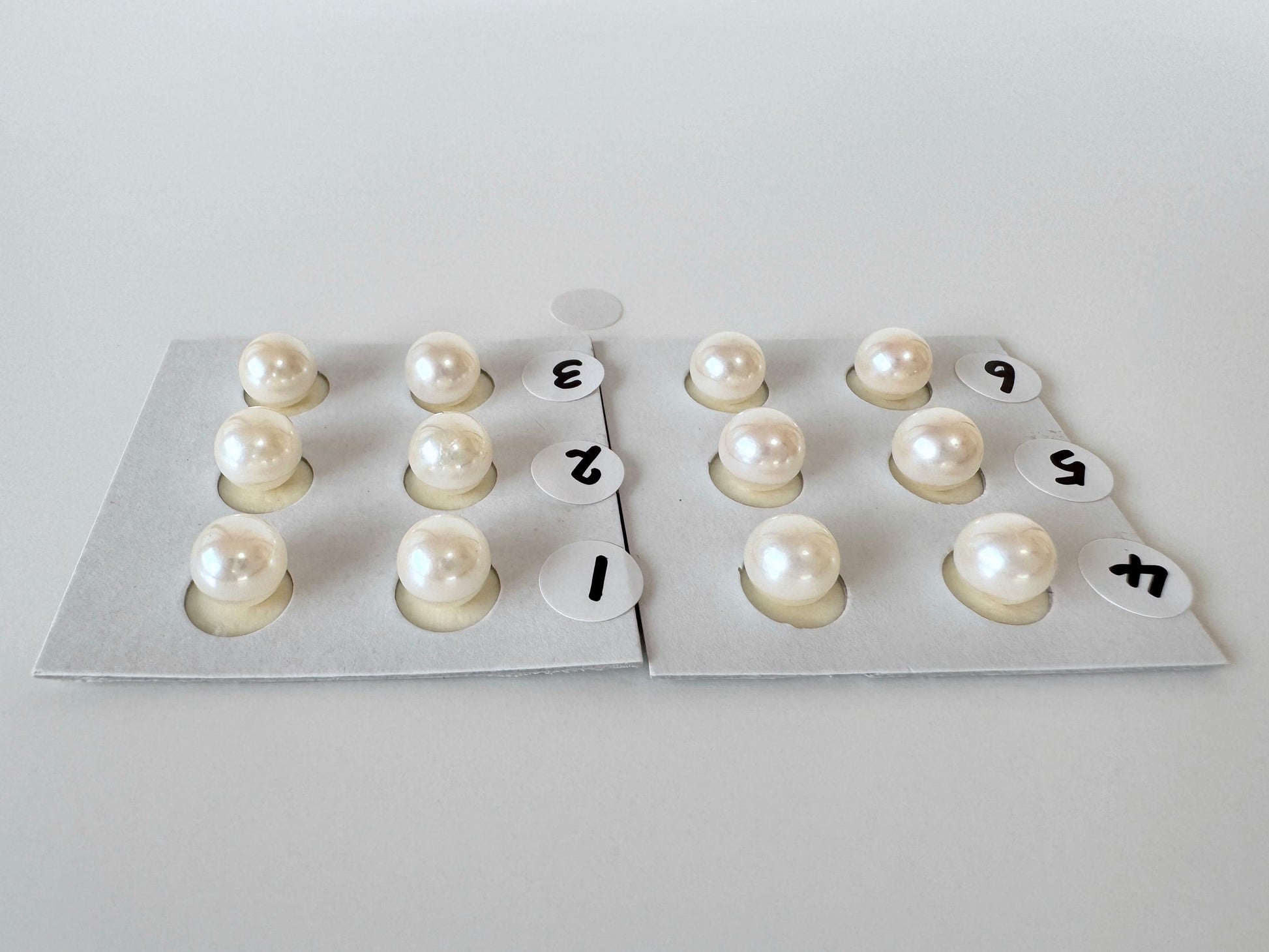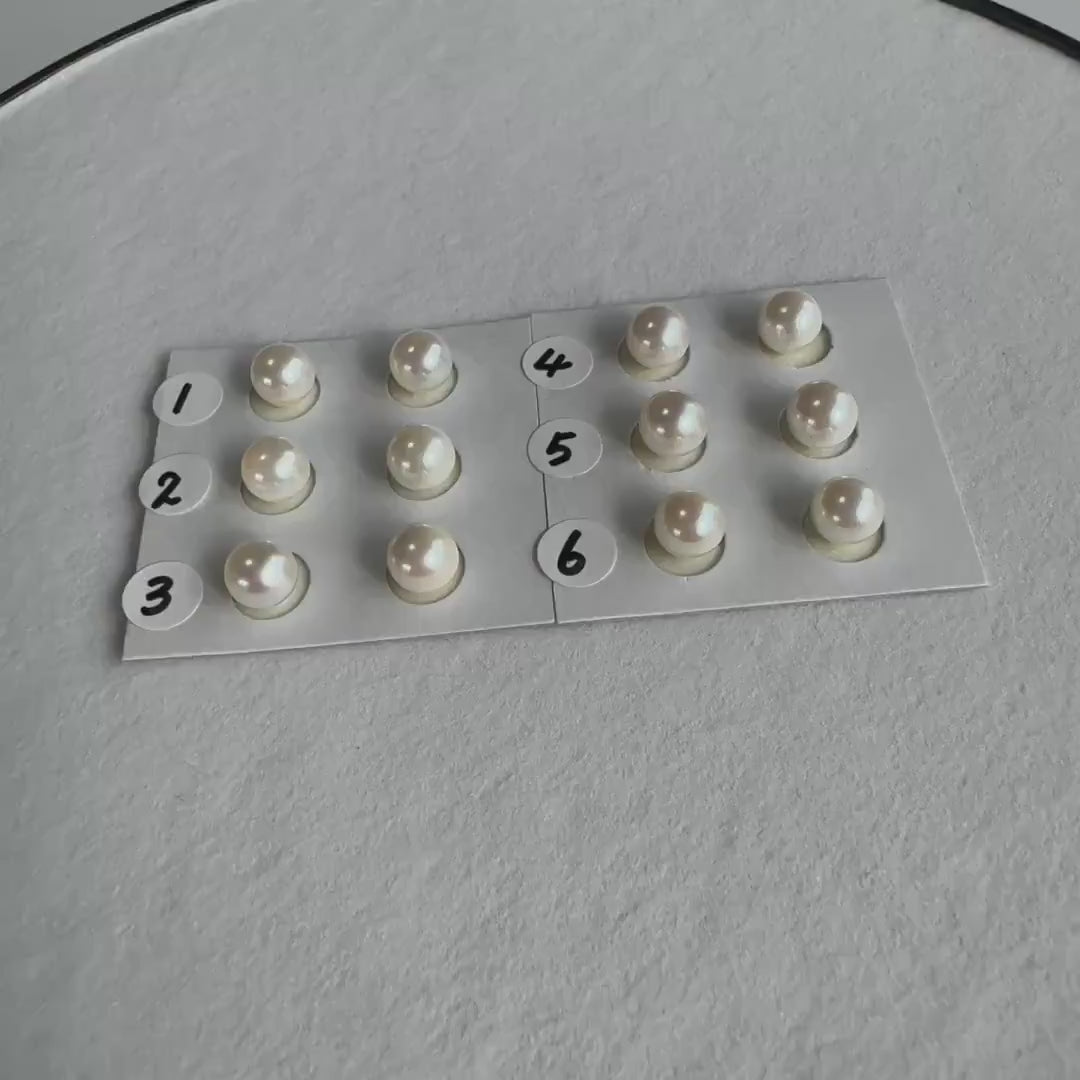 Japanese Akoya Cultured Pearl 7-7.5mm, Natural White Color, Half-Drilled Round loose, Price per Pair, Salt water pearl