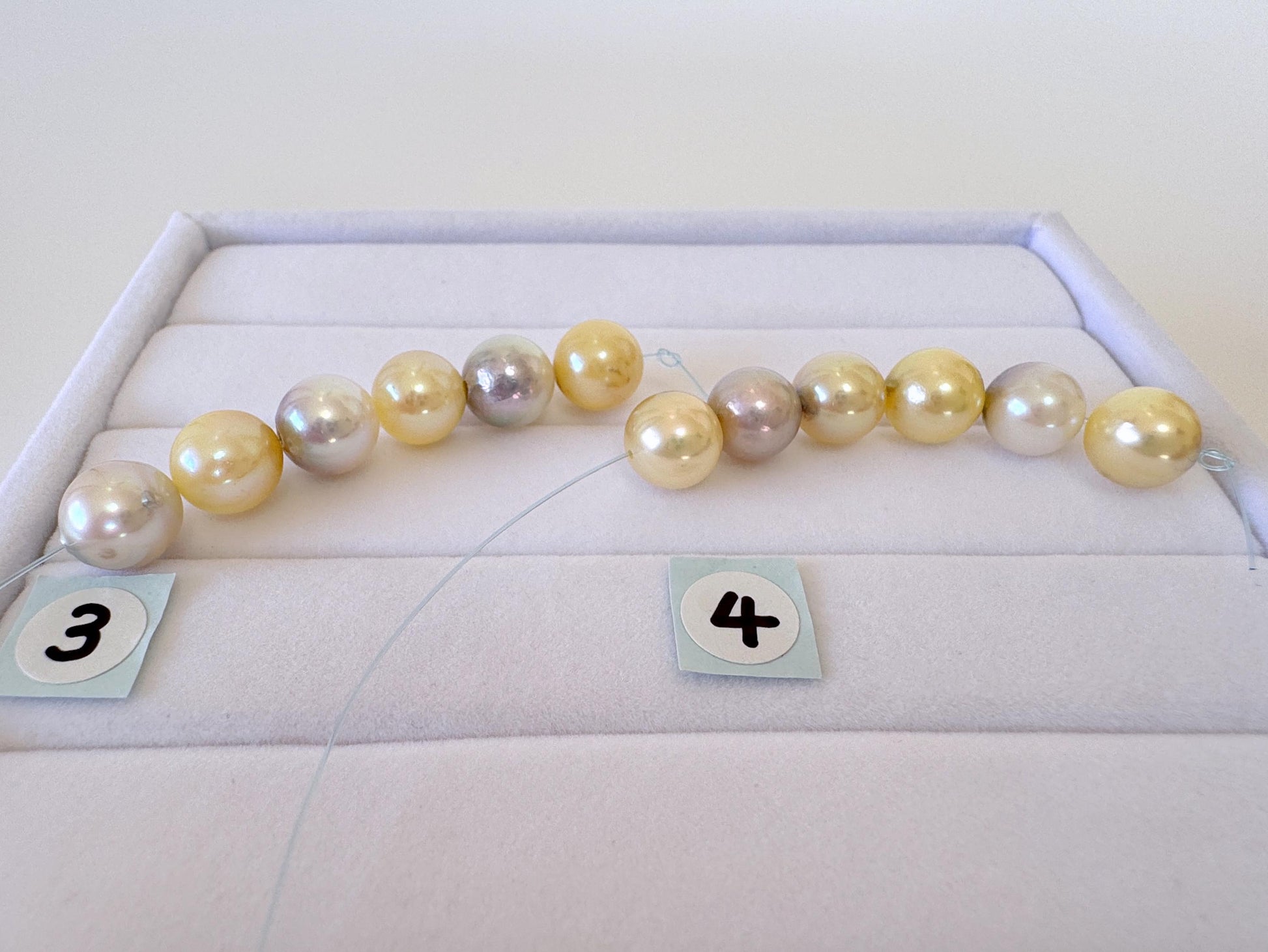 Japanese Natural blue/silver/yellow Akoya Pearl Beads, 7.5-8mm, Mini Strand, Short Strand of 6 Pieces, Cultured in Sea Water