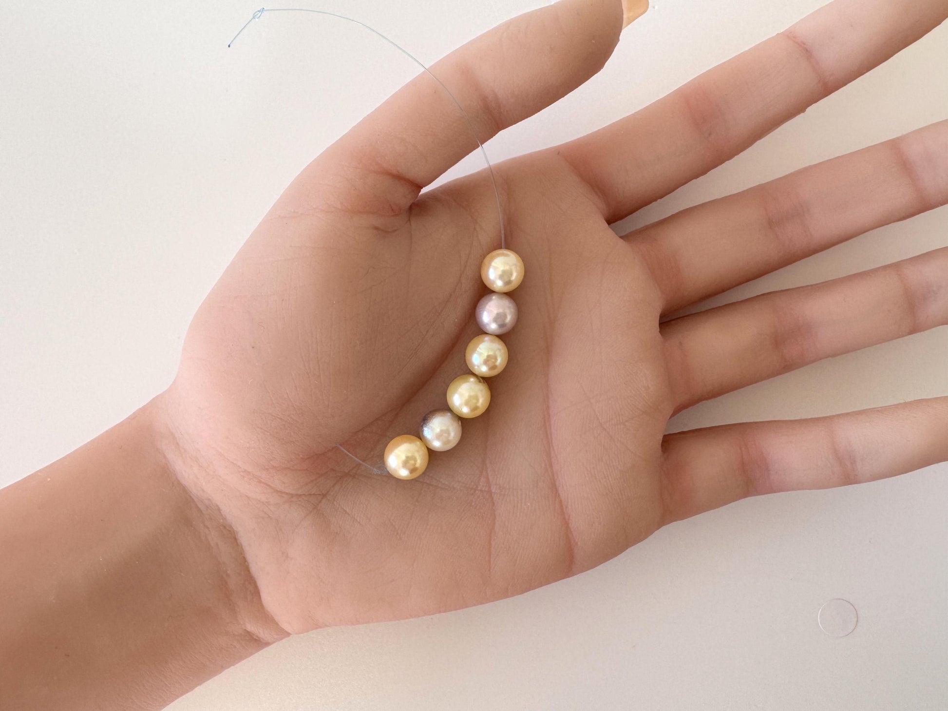 Japanese Akoya Pearl Beads: Natural Blue Silver Yellow - Cultured Saltwater Pearls, 7.5-8mm, Mini Strand Craft Supplies, 6 Pcs Strand