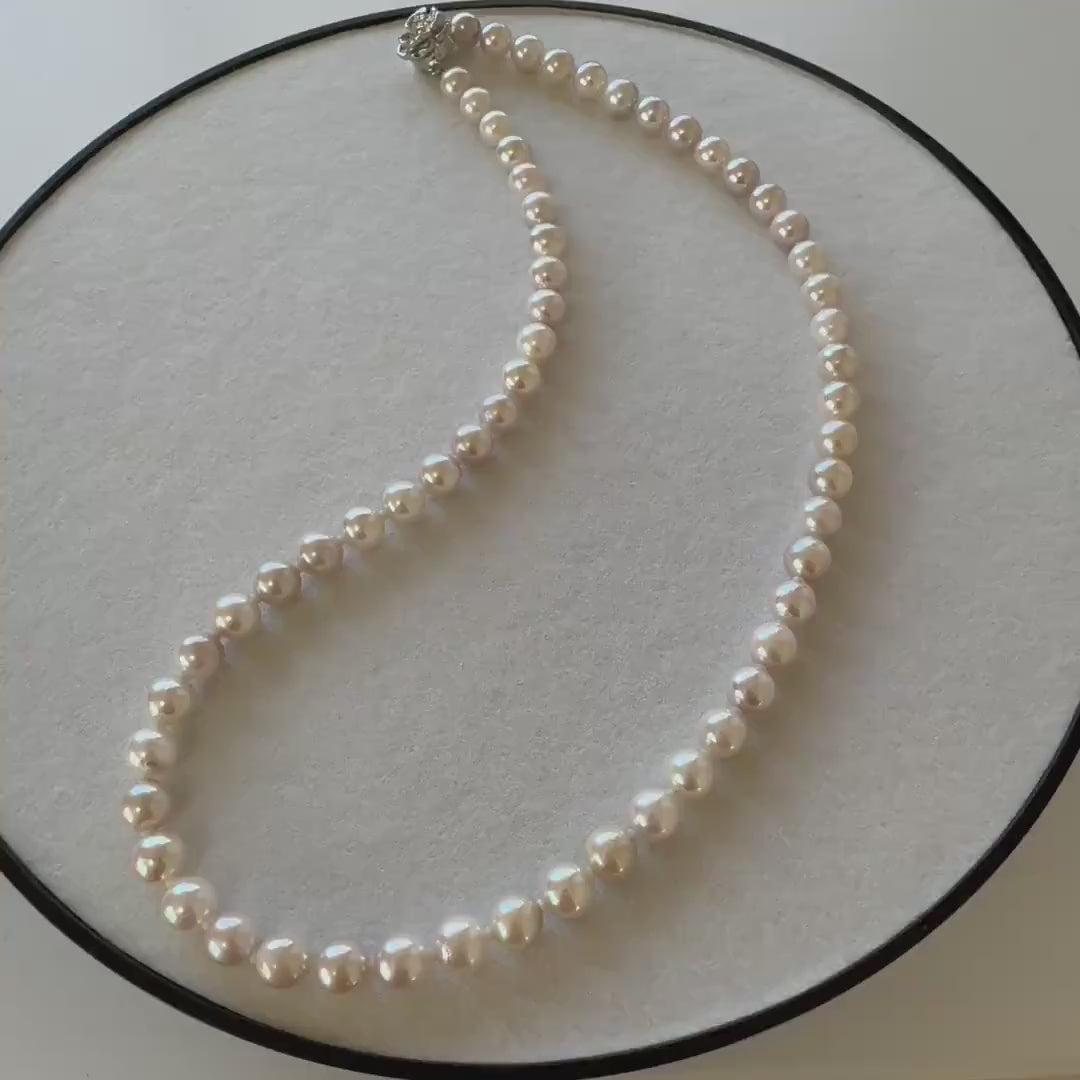 Necklace, 6.5-7mm Japanese Cream White Akoya Pearl Necklace with Silver Clasp, Genuine Akoya Pearl, 45cm, 17.7in, Cultured Salt water pearl