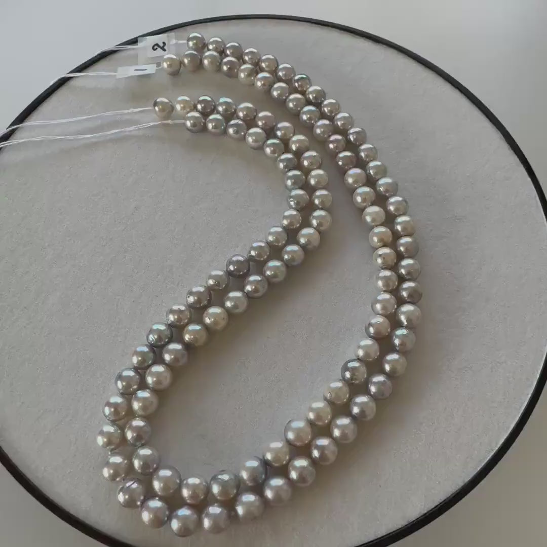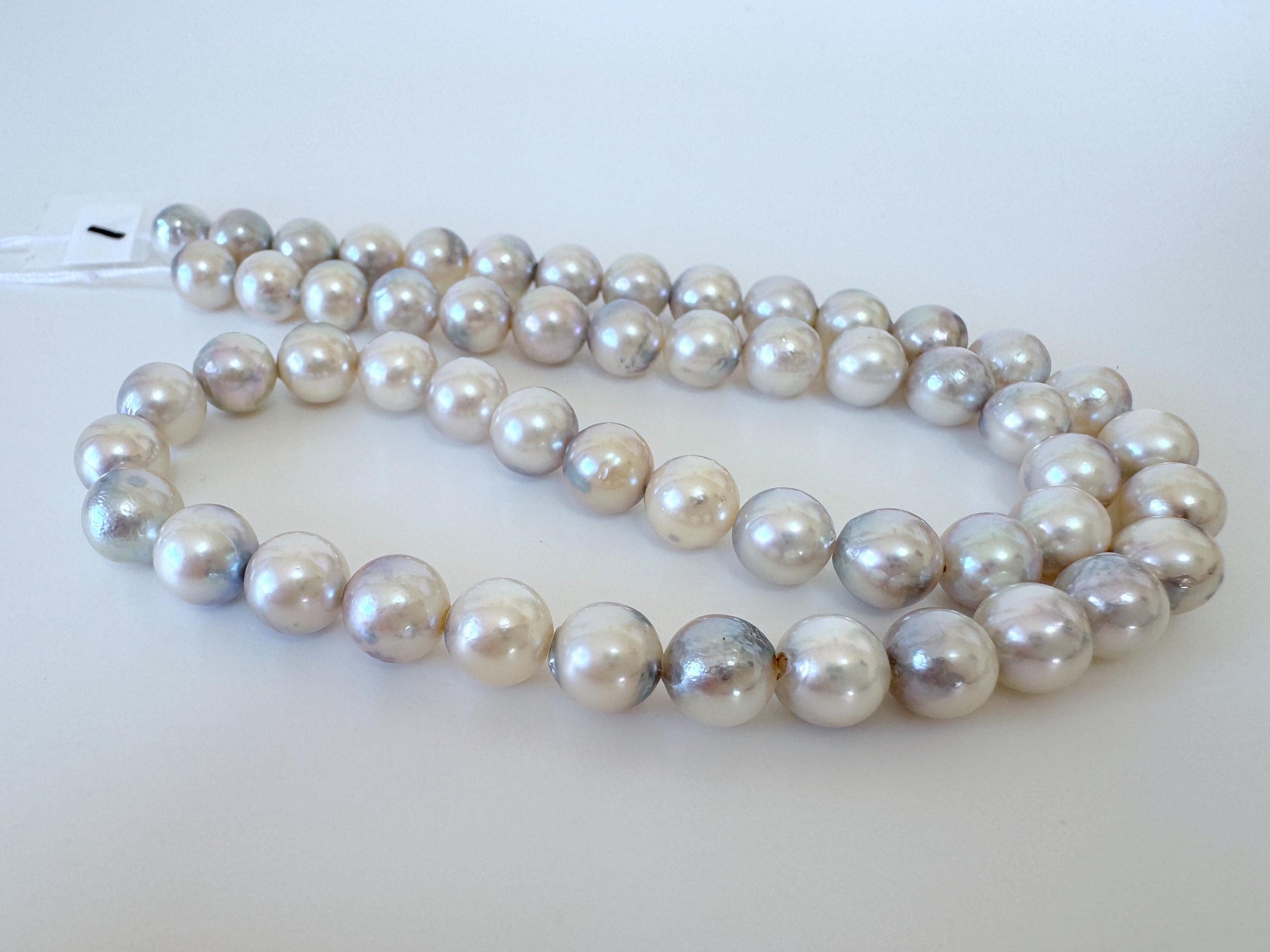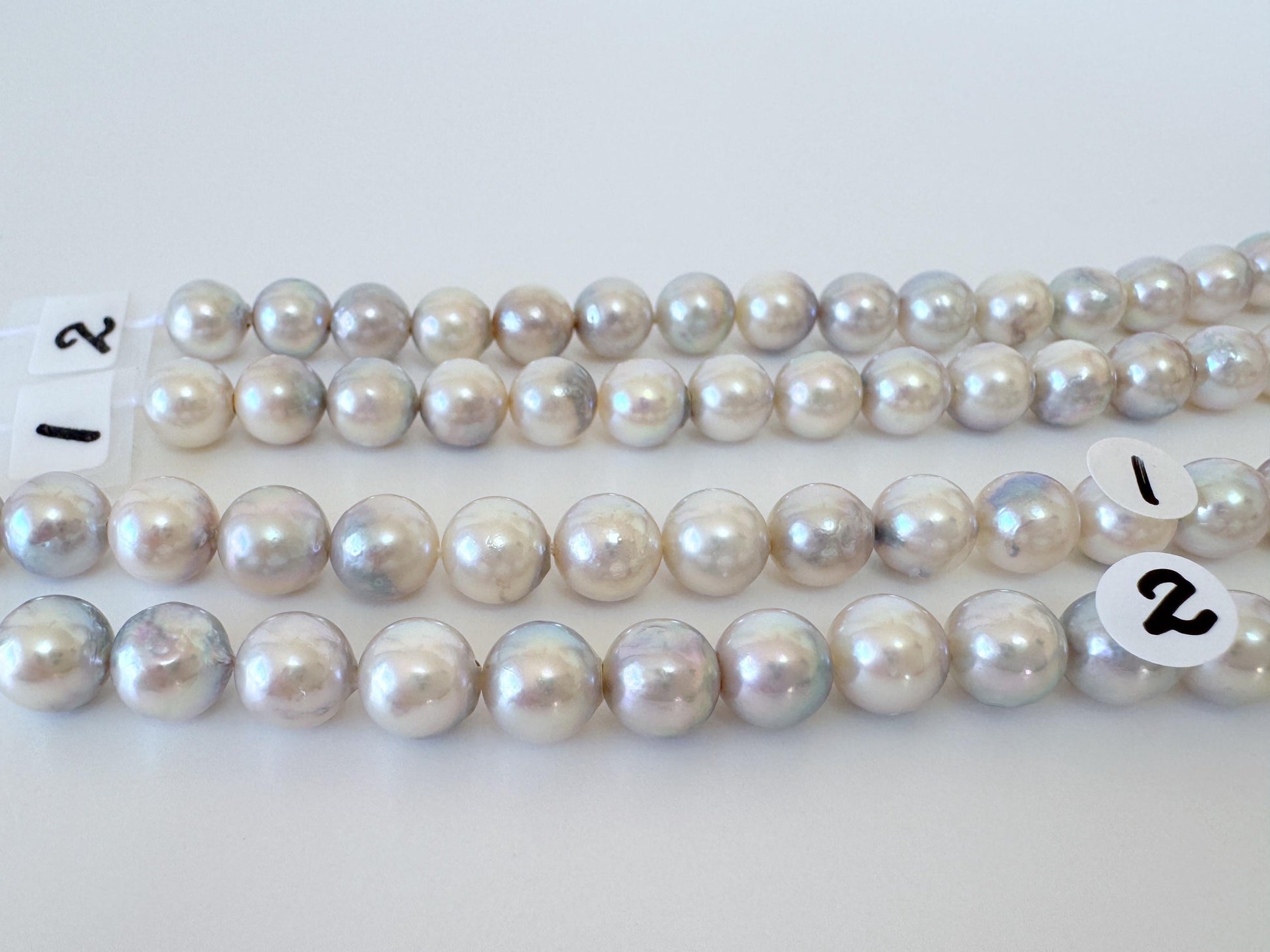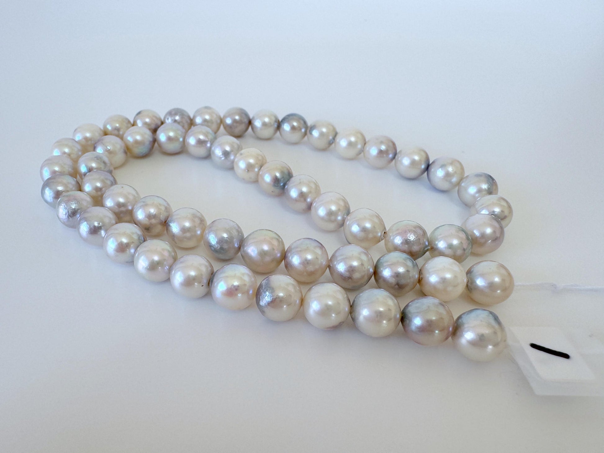 Cultured in the pristine saltwater of Iseshima, each pearl in this full strand showcases a captivating blue silver hue that makes it perfect for necklaces.