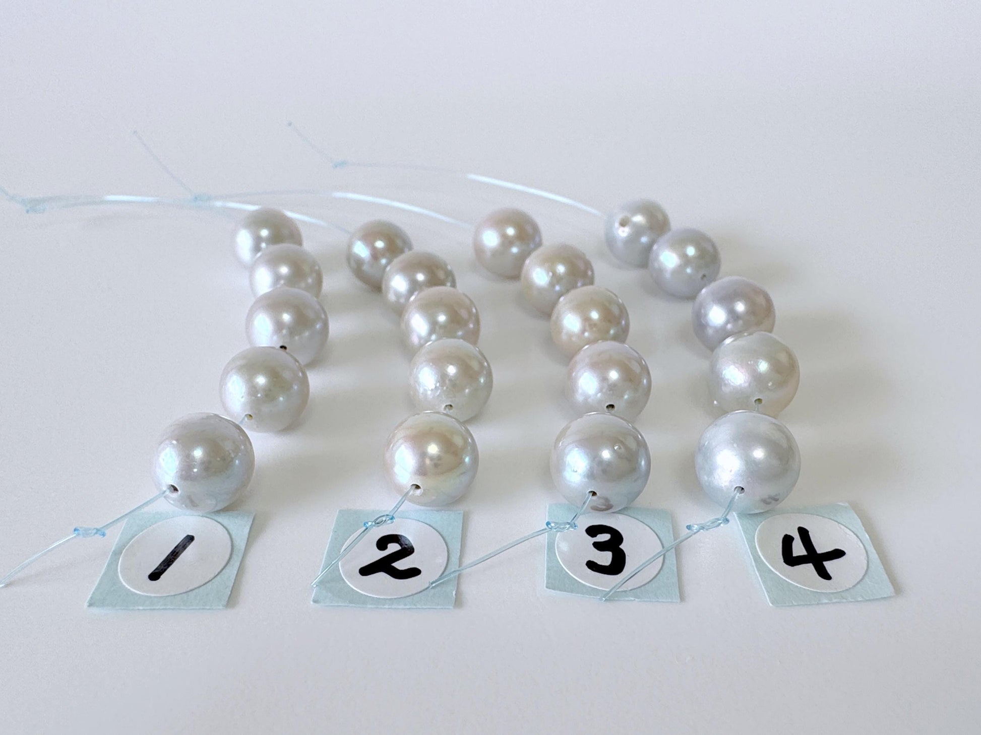 Japanese blue/silver color (cobalt treated) Akoya Pearl Beads, 7.5-8mm, Mini Strand, Short Strand of 5 Pieces, Cultured in Sea Water