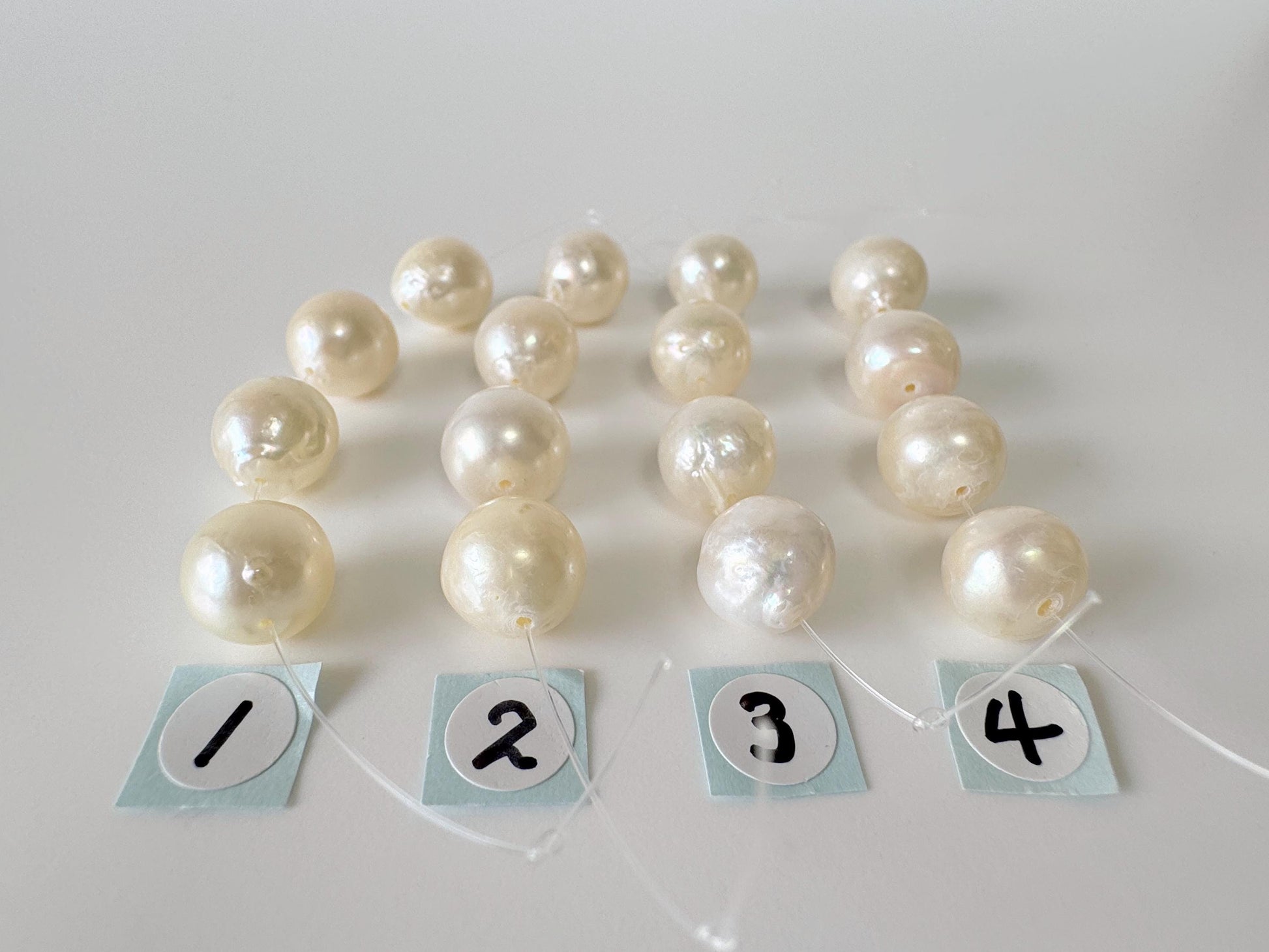 Japanese Cream White Akoya Pearl Beads, 9.5-9.9mm, Mini Strand, Short Strand, 4 Pieces, Genuine Akoya Pearl, Cultured in Sea Water
