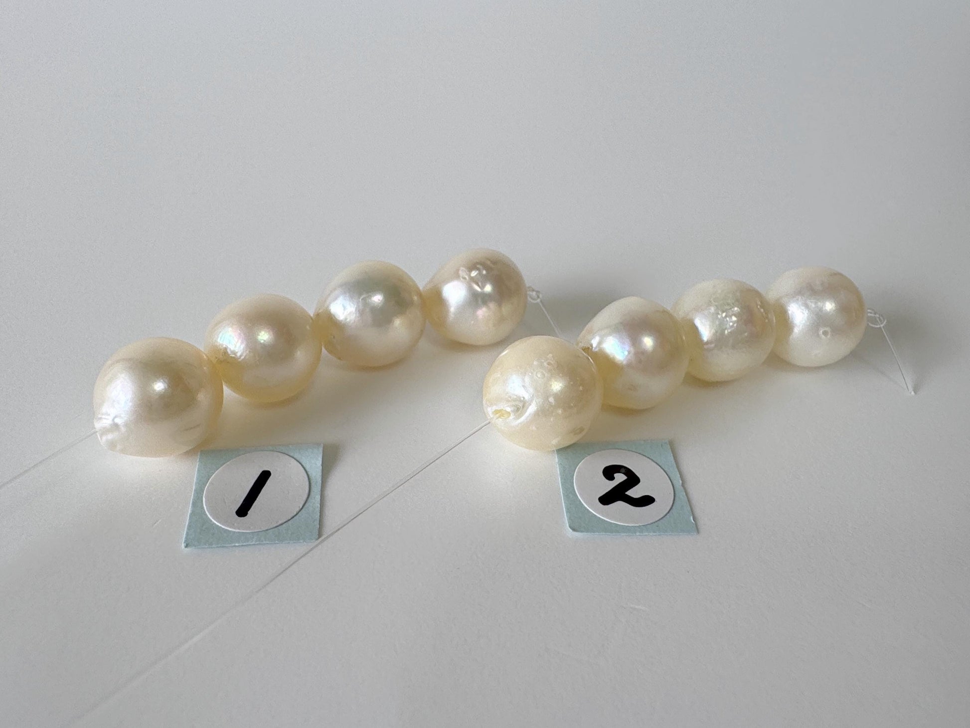 Japanese Cream White Akoya Pearl Beads, 9.5-9.9mm, Mini Strand, Short Strand, 4 Pieces, Genuine Akoya Pearl, Cultured in Sea Water
