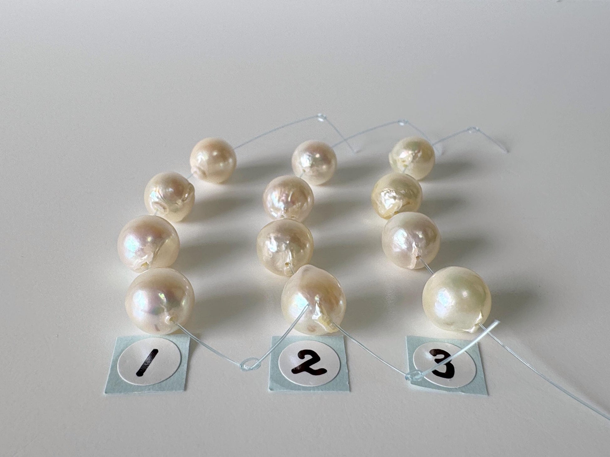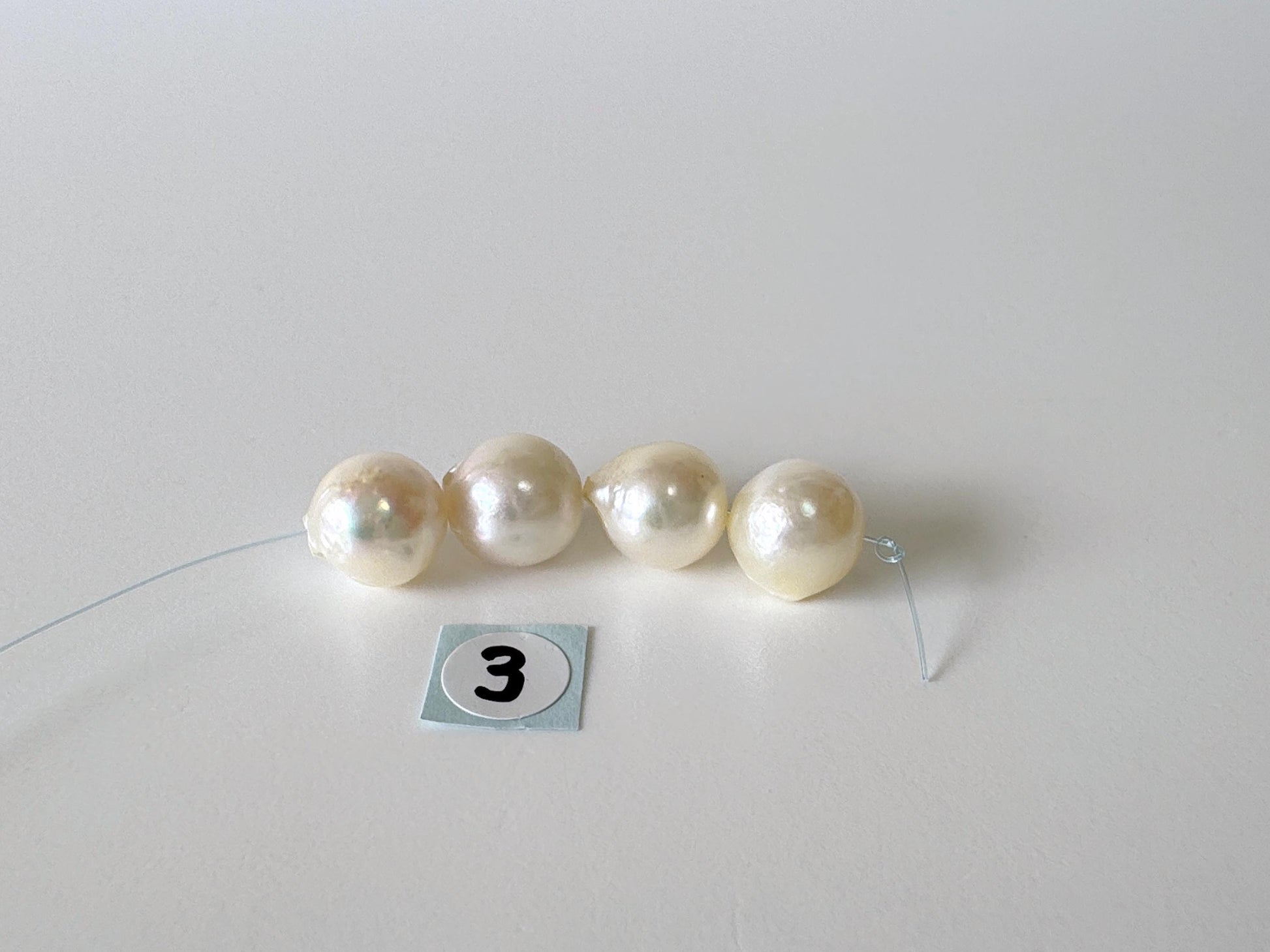 Japanese Cream White Akoya Pearl Beads, 9-9.5mm, Mini Strand, Short Strand, 4 Pieces, Genuine Akoya Pearl, Cultured in Sea Water