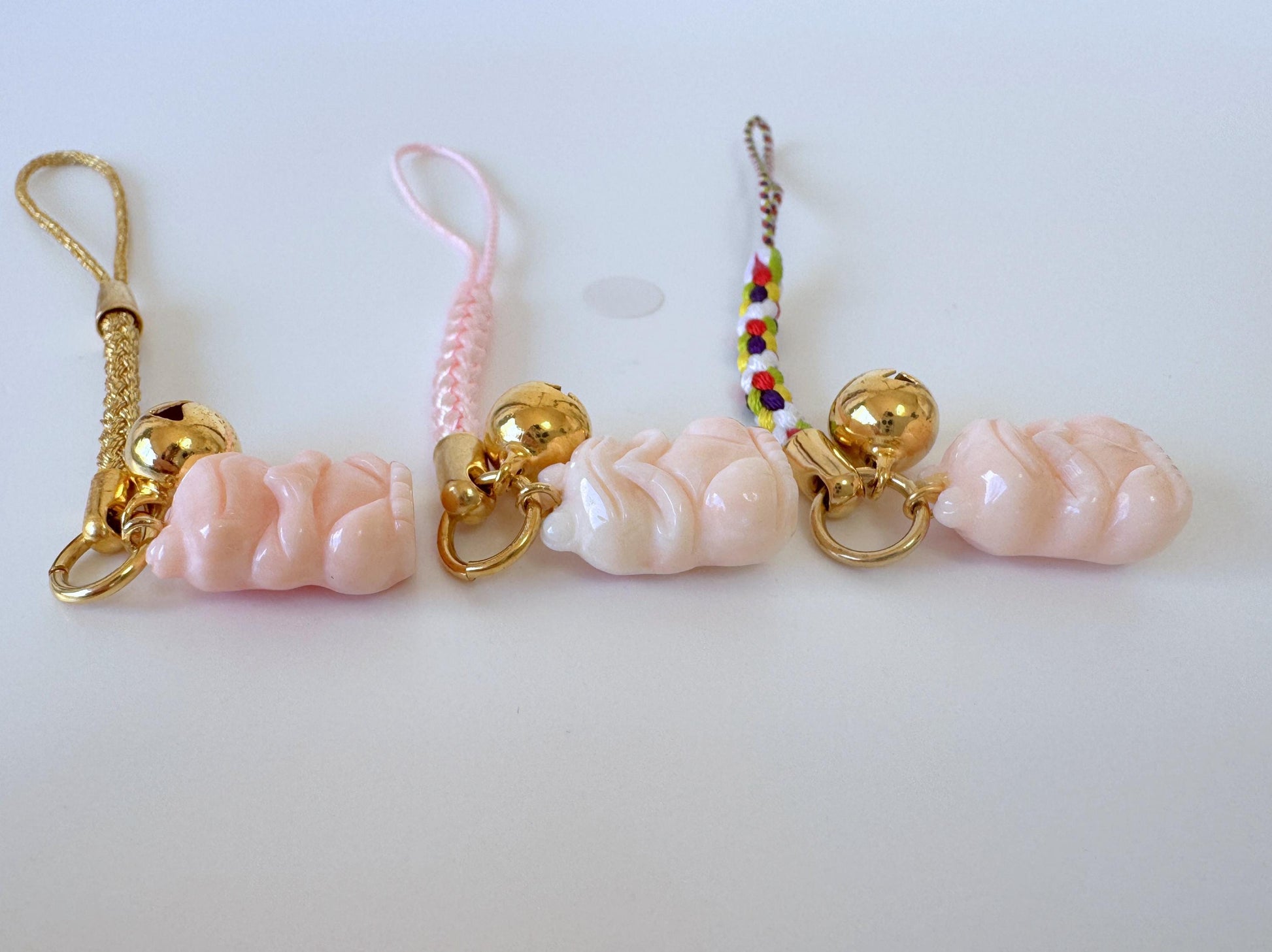 Key Strap Charm: Praying Frog Carved from Natural Deep Sea Coral - Lucky Amulet