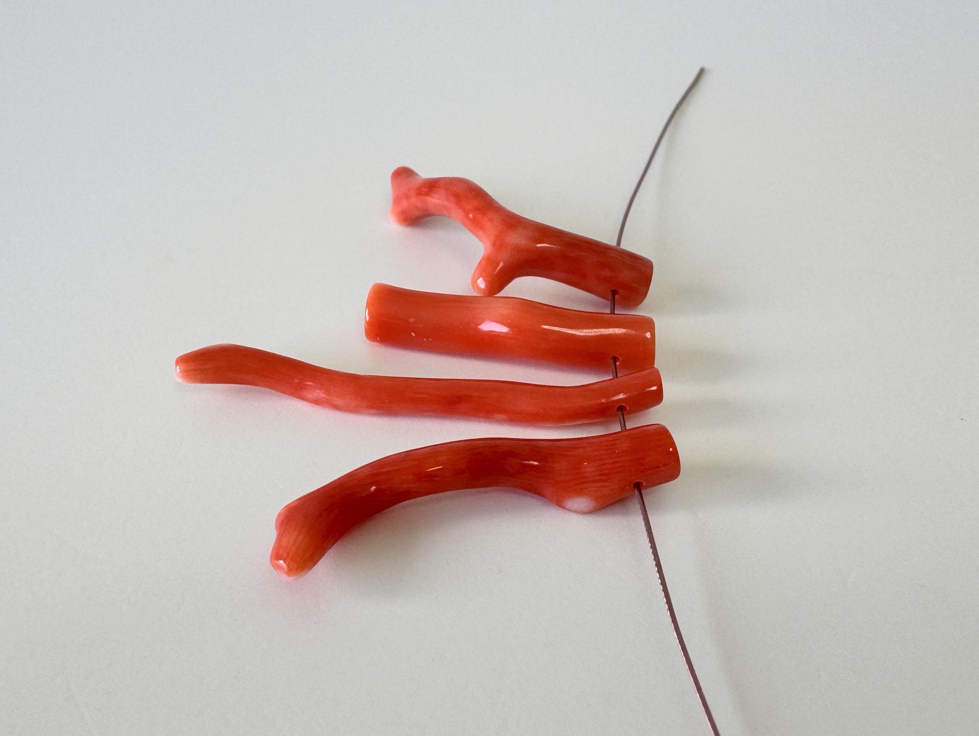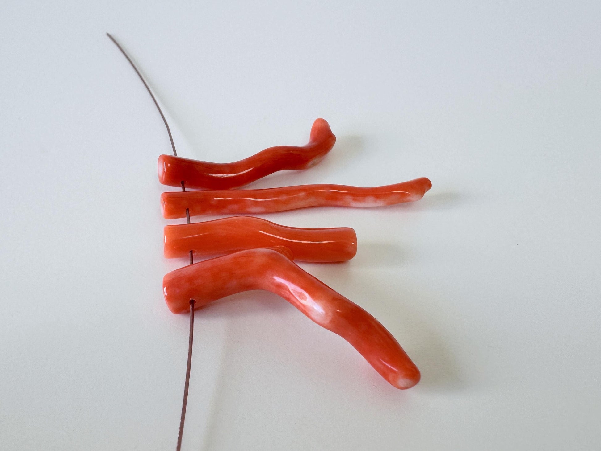 Momo Coral Branch Set: Natural Japanese Orange Coral for Jewelry Making (4pcs, Side Full-Hole, 24-36mm Length, Genuine Material)