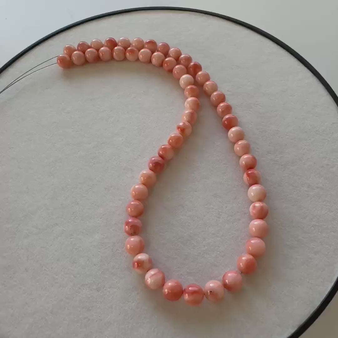 Each bead in this 40cm strand showcases the unique character of coral round beads, perfect for creating exquisite jewelry pieces. Inspired by the ocean's depths, these pink coral beads bring a touch of nature's artistry to your designs.