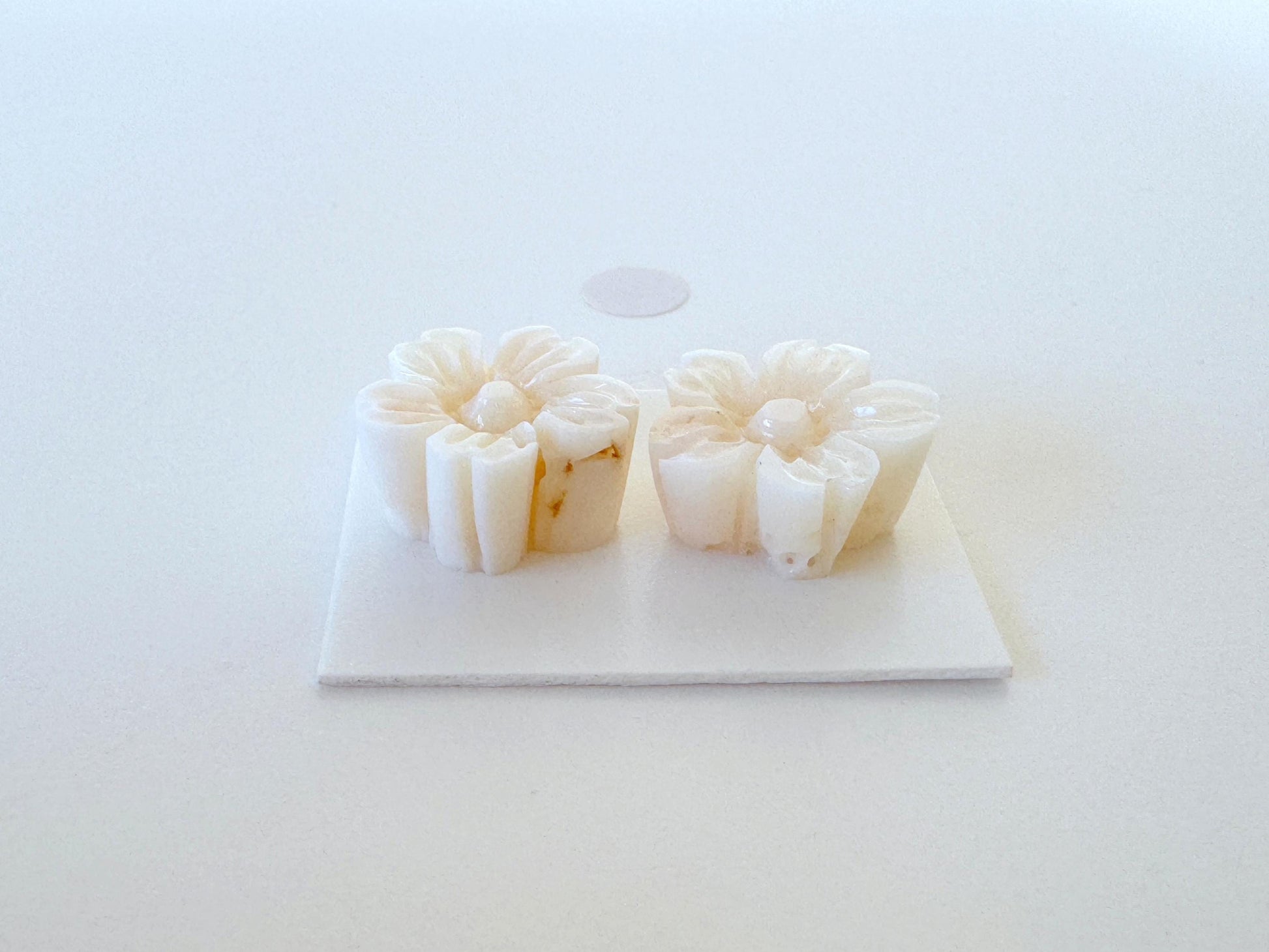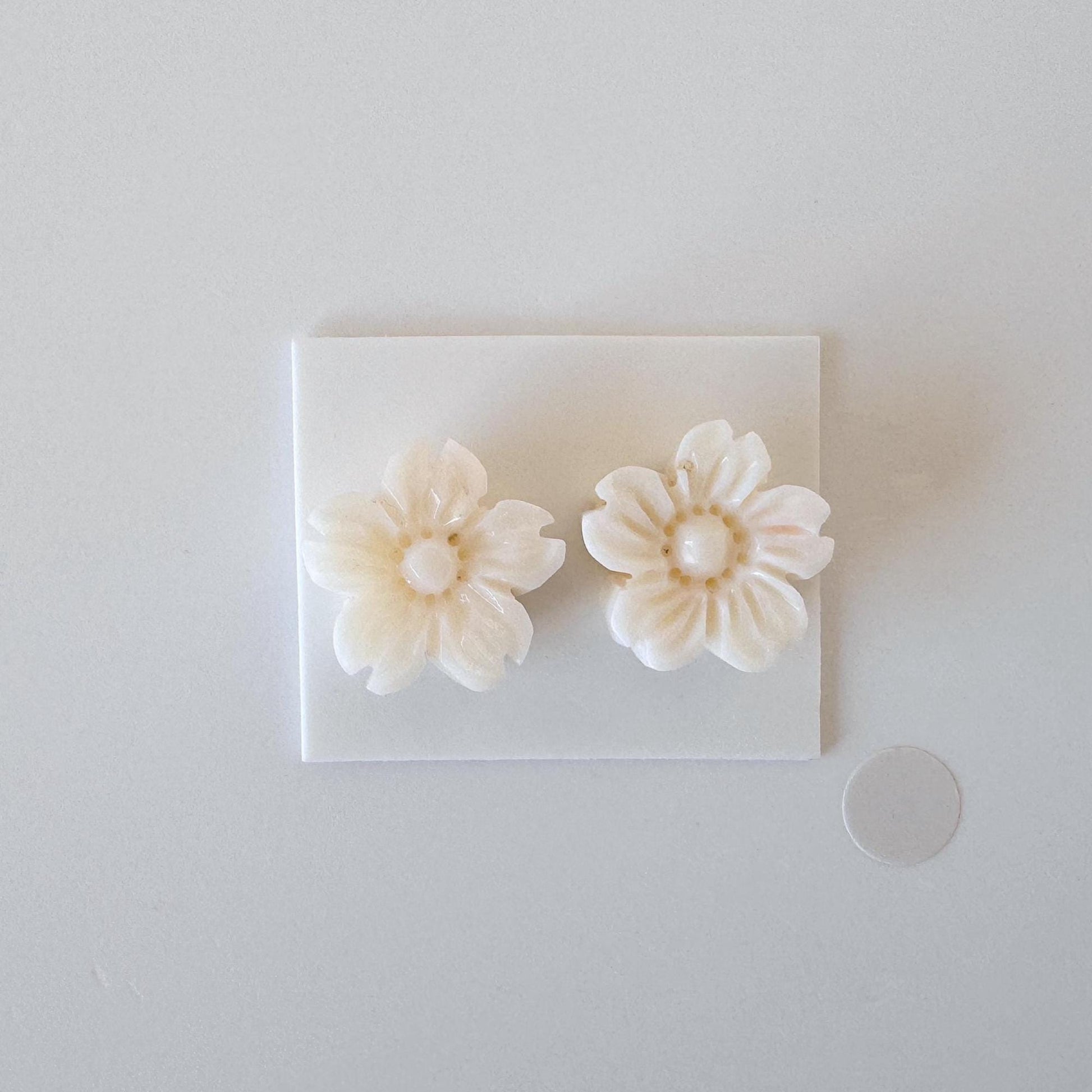 Natural Coral Carving - White Cherry Blossom, 15.5mm Sakura Pair
