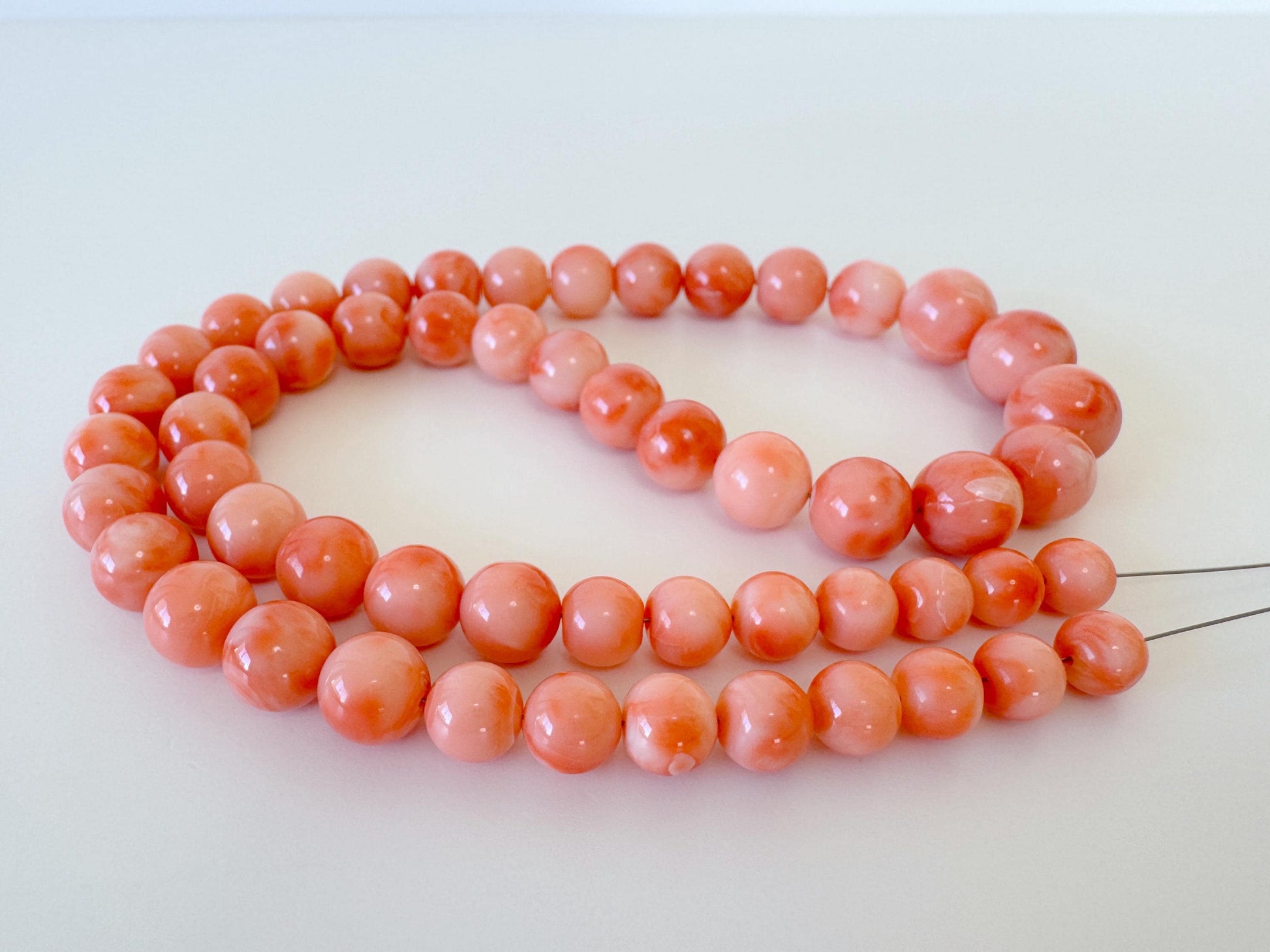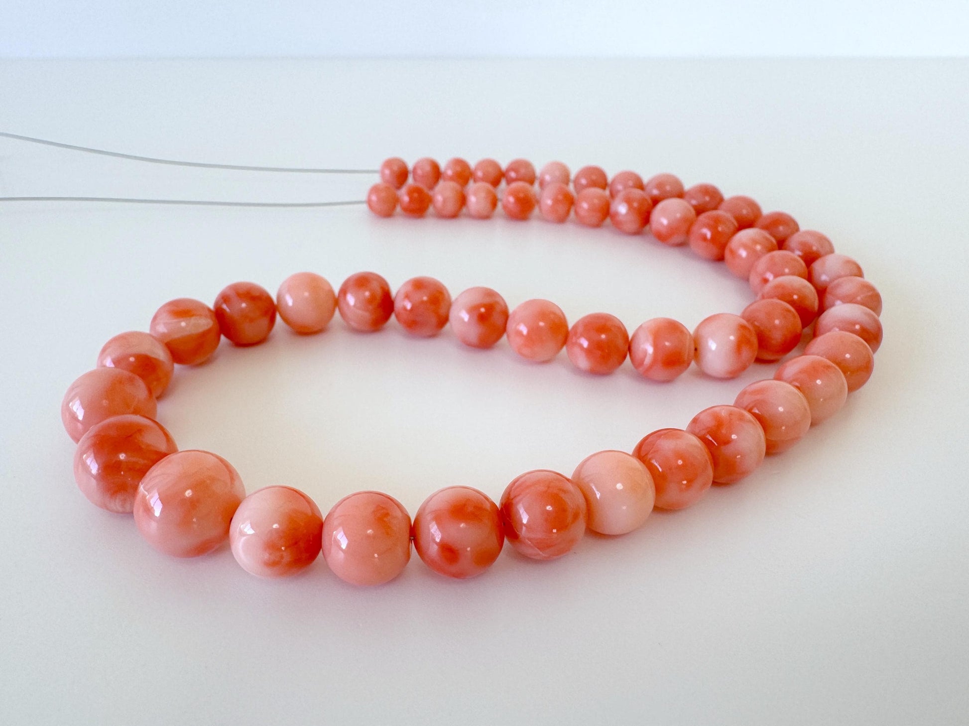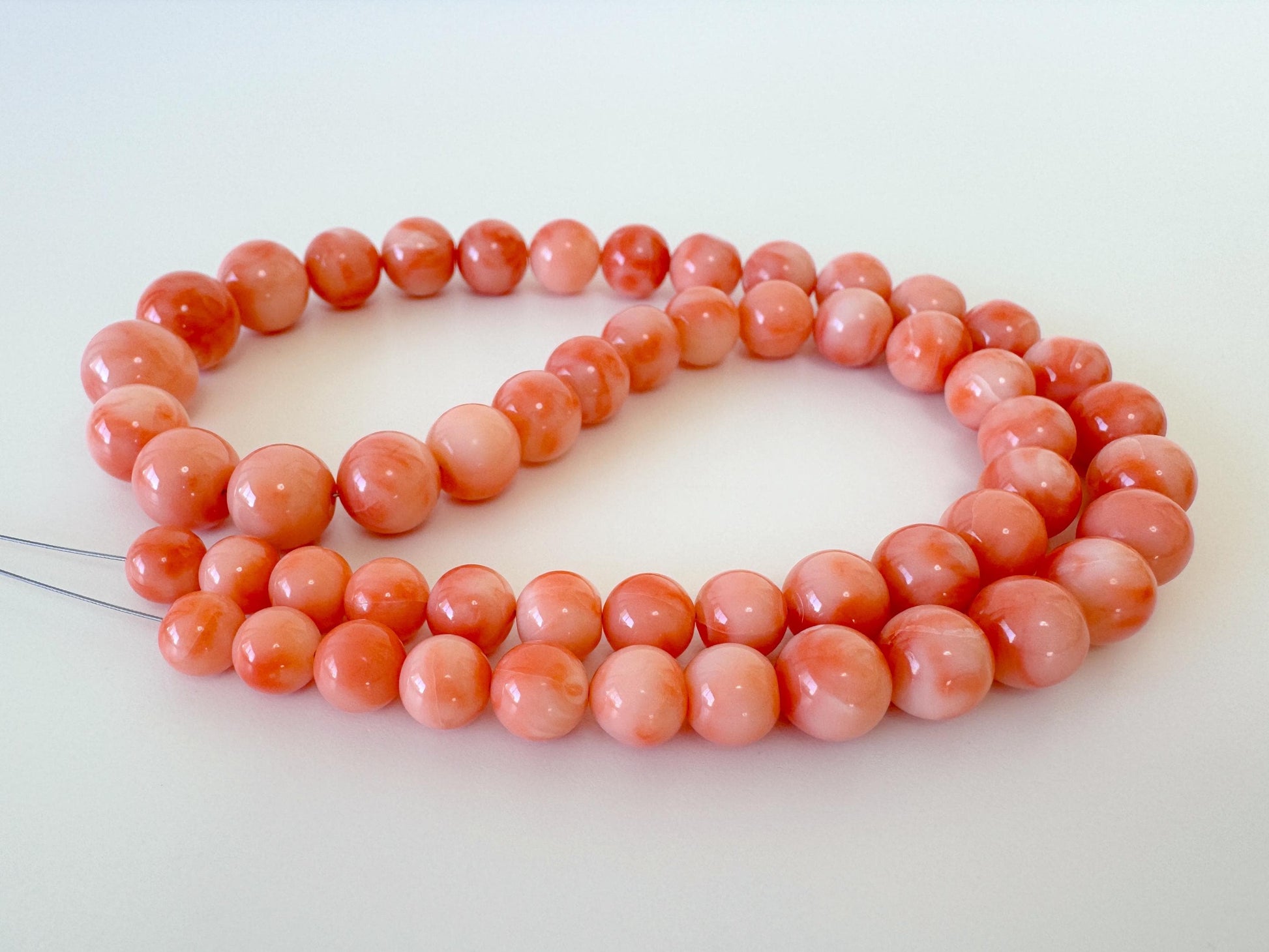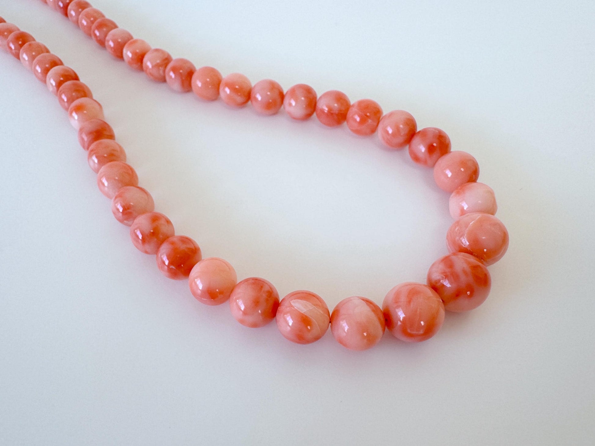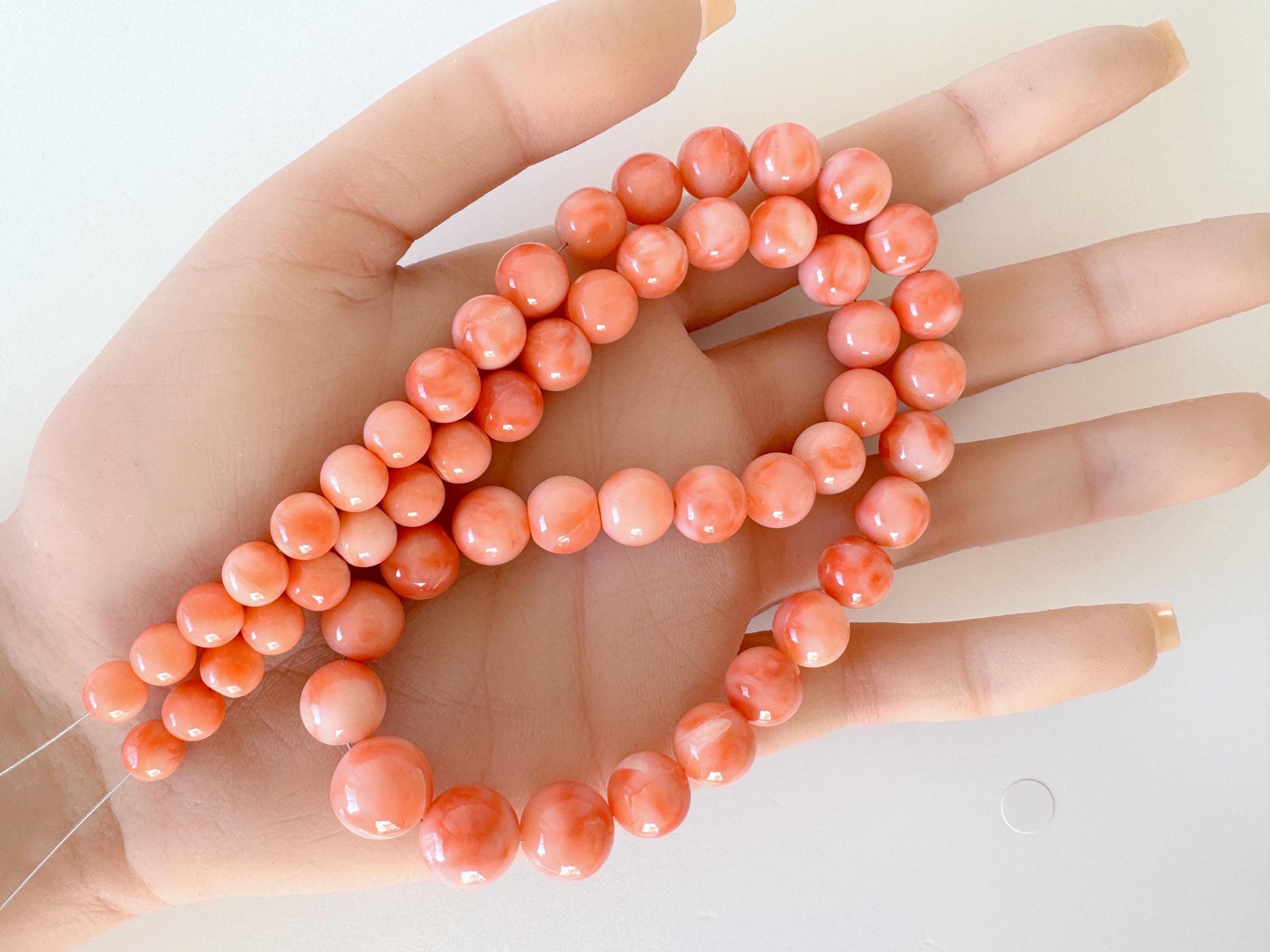 ※As can be seen on most of the deep sea coral, there are natural cracks and streaks on the surface of some beads.