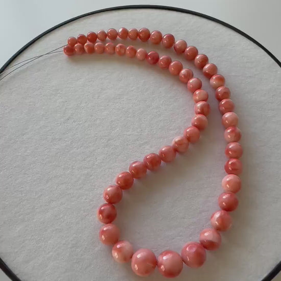 Natural Coral Strand: Deep Sea Coral Orange Pink Round Beads - Genuine Gemstone, 6.7-11.2mm, 45cm Jewelry Supply