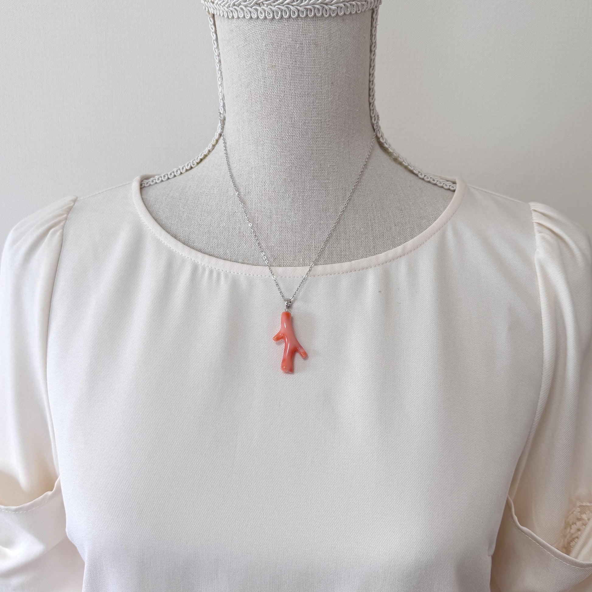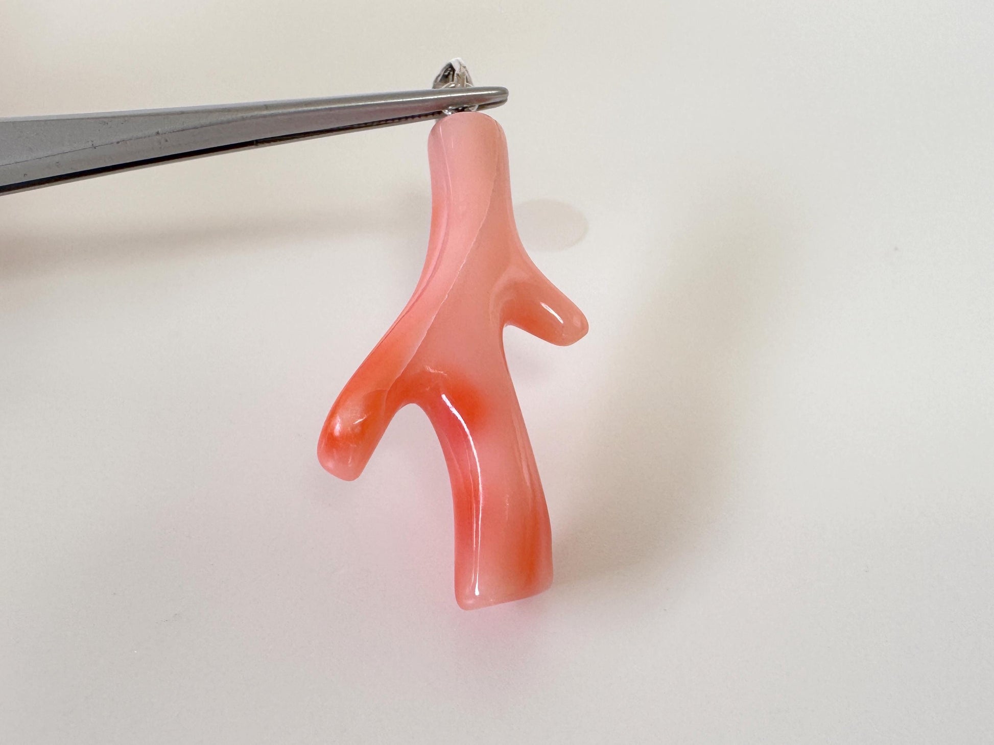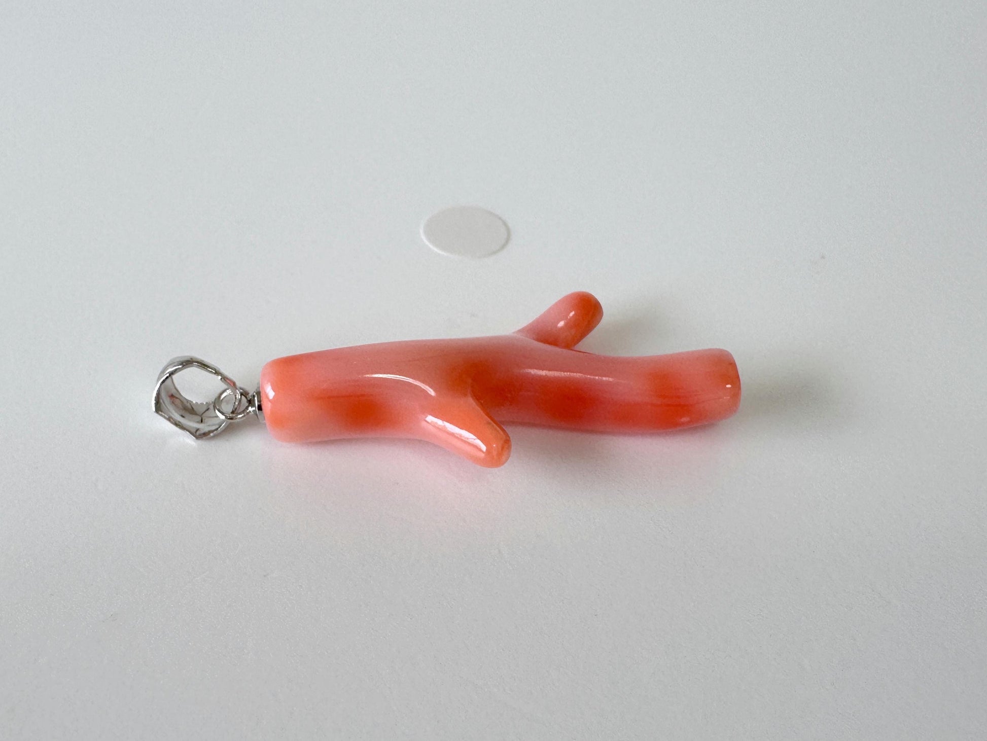 Natural Deep Sea Coral Branch Pendant, 35mm, Natural Pink/Orange color coral branch pendant, Silver (Rhodium-Plated) bail