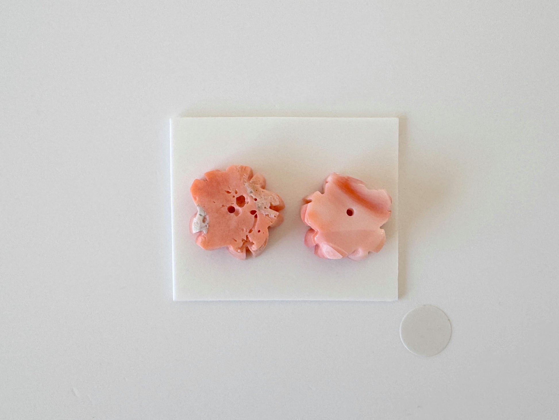 Natural Deep Sea Coral Cherry Blossom Carvings, Pink Orange Sakura Pair 14-15mm