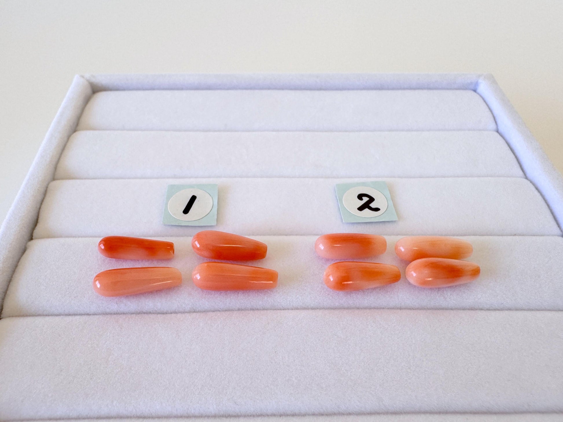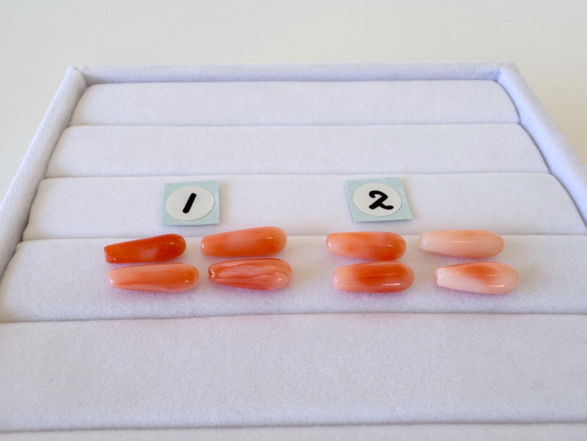 Natural Deep Sea Coral Drop-Shape loose, natural pink/orange coral, for jewelry making, price per 4pcs set, drilled hole on top