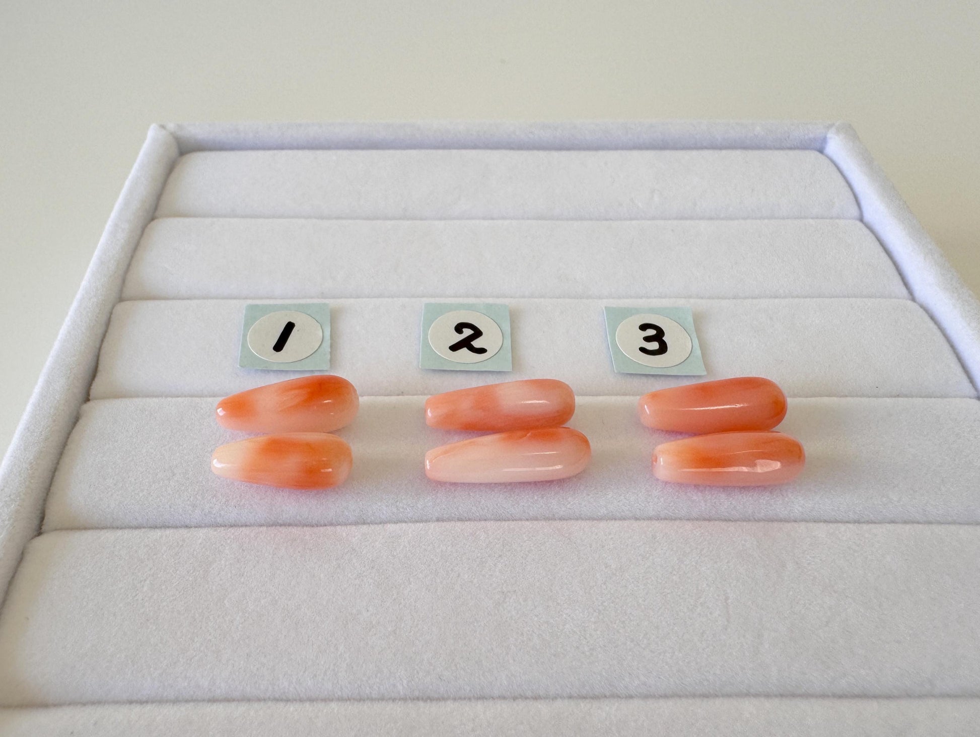 Natural Deep Sea Coral Drop-Shape loose, natural pink/orange coral, for jewelry making, for earrings, price per pair, drilled hole on top