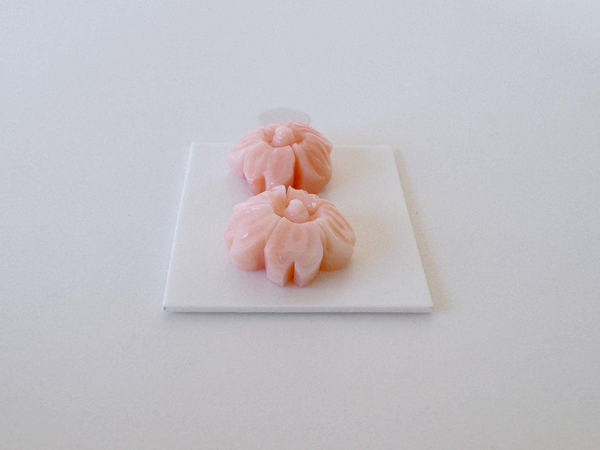 Natural Deep Sea Coral Pink Cherry Blossom Carving Pair – 14.5mm Sakura