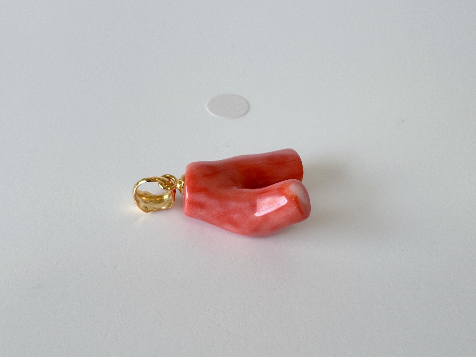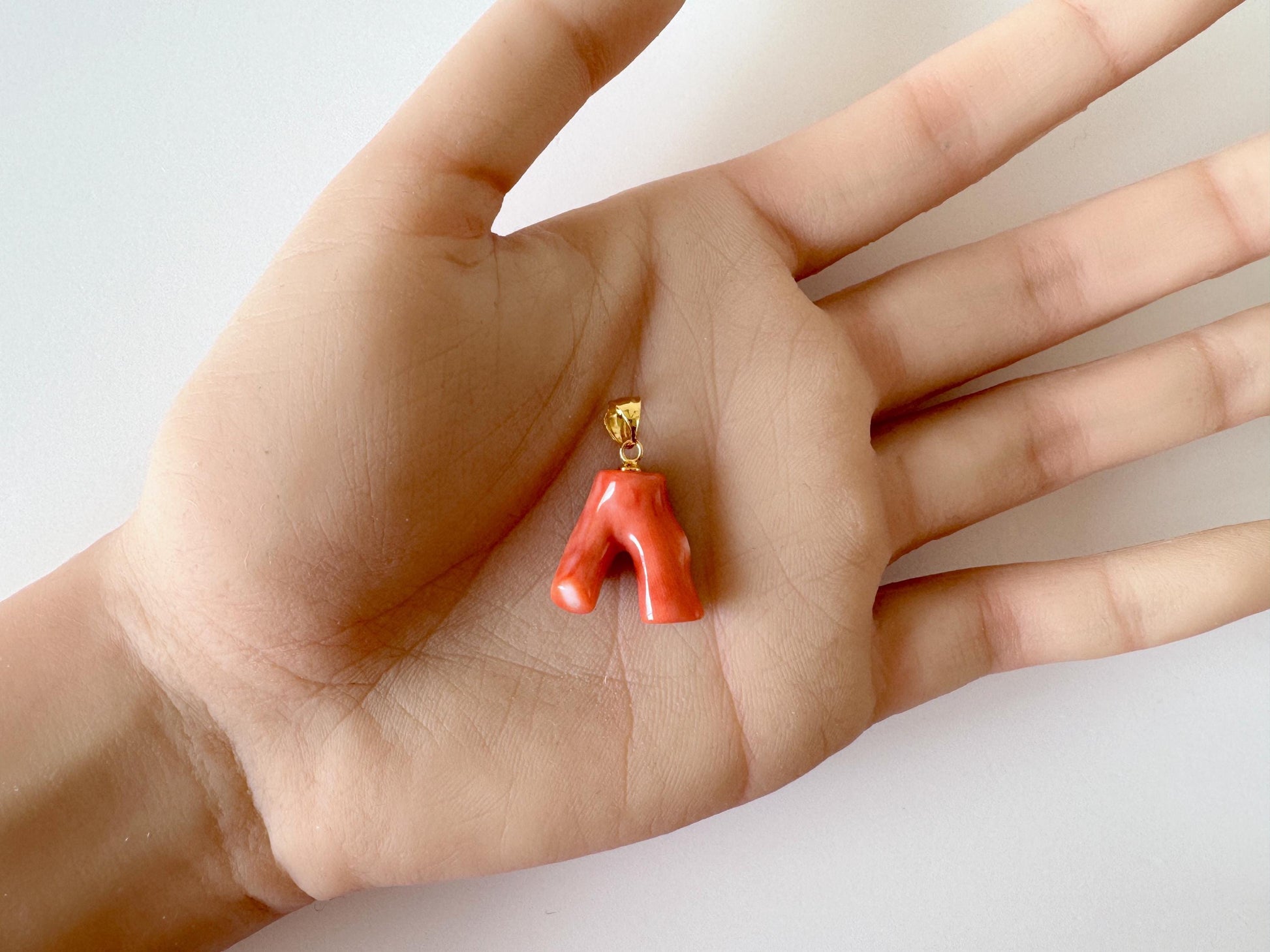 Natural Momo coral branch pendant, 18mm, Natural Japanese Orange color coral branch pendant, Silver (Gold-Plated) bail