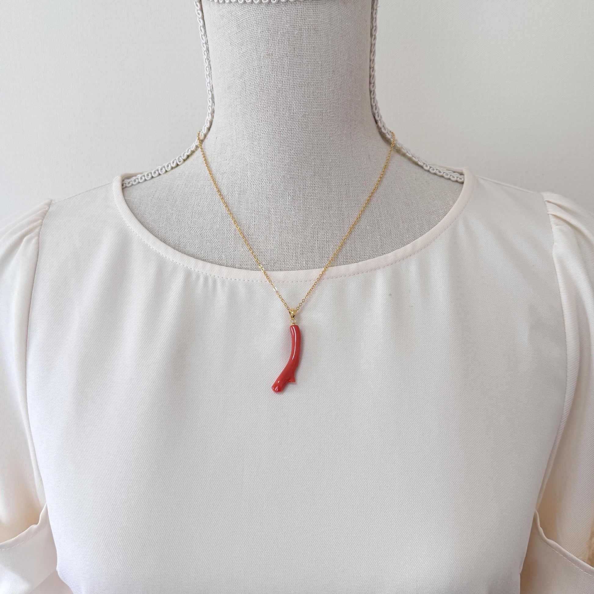 Natural Momo coral branch pendant, 35mm, Natural Japanese Dark Orange color coral branch pendant, Silver (Gold-Plated) bail