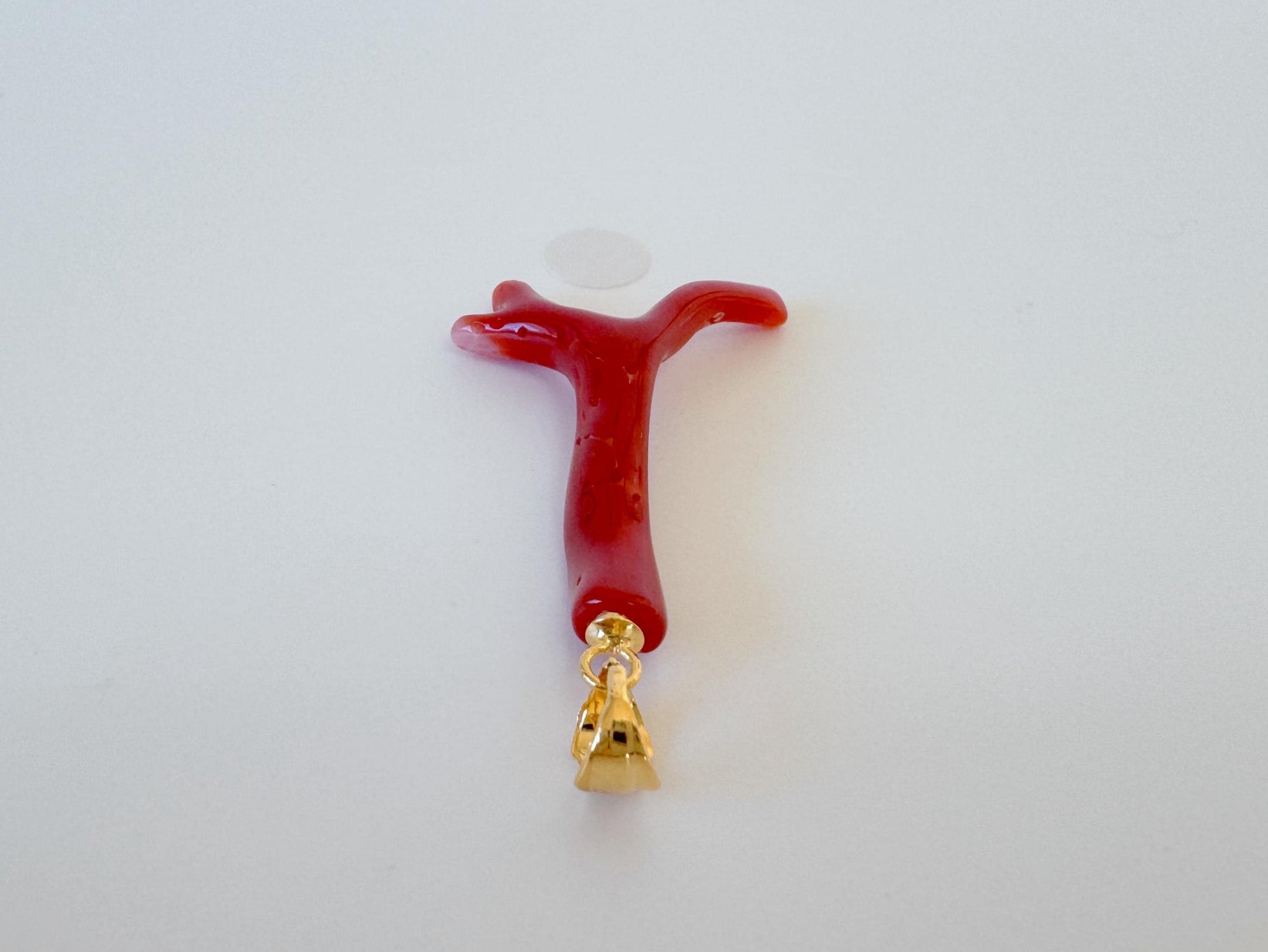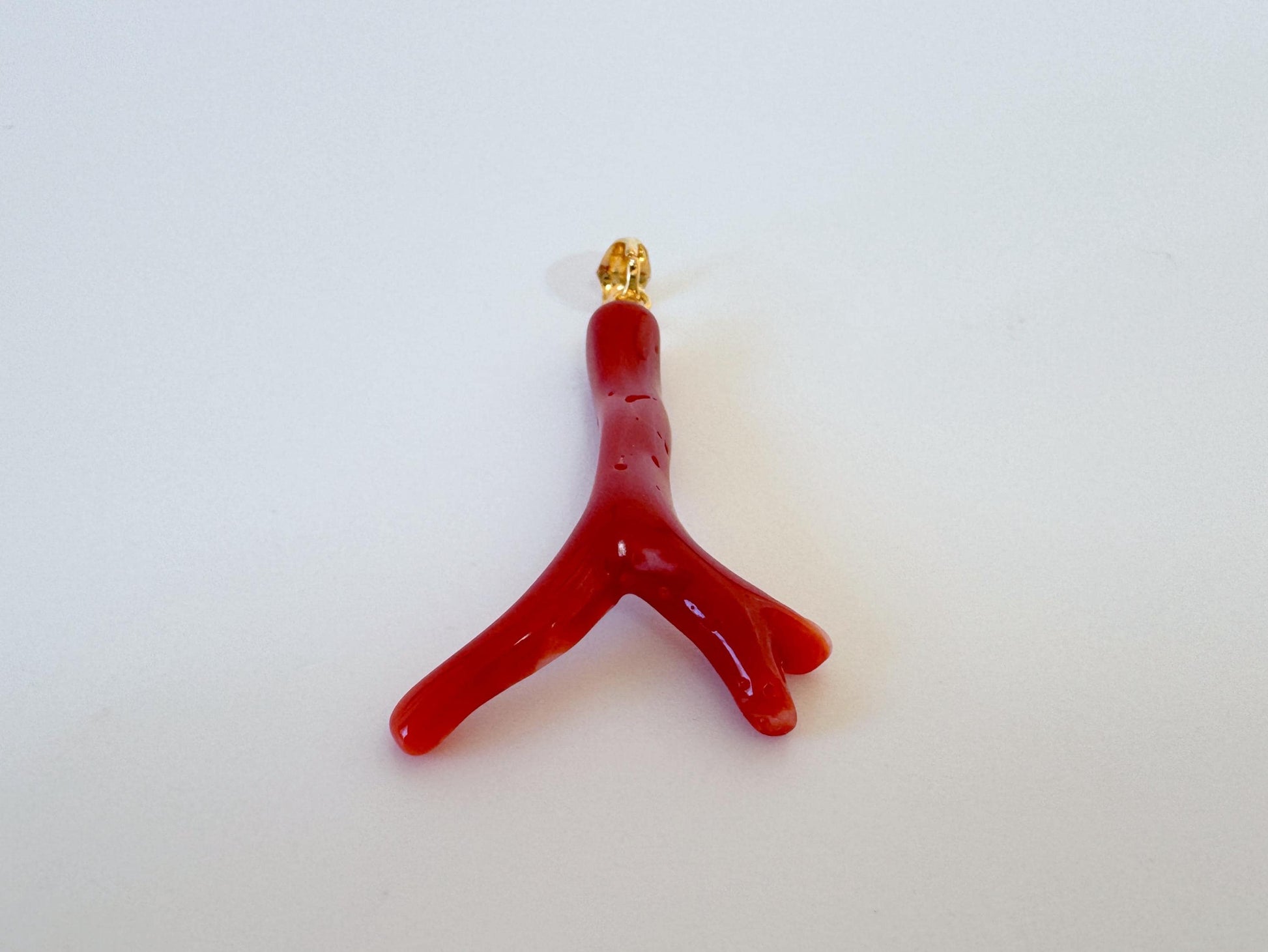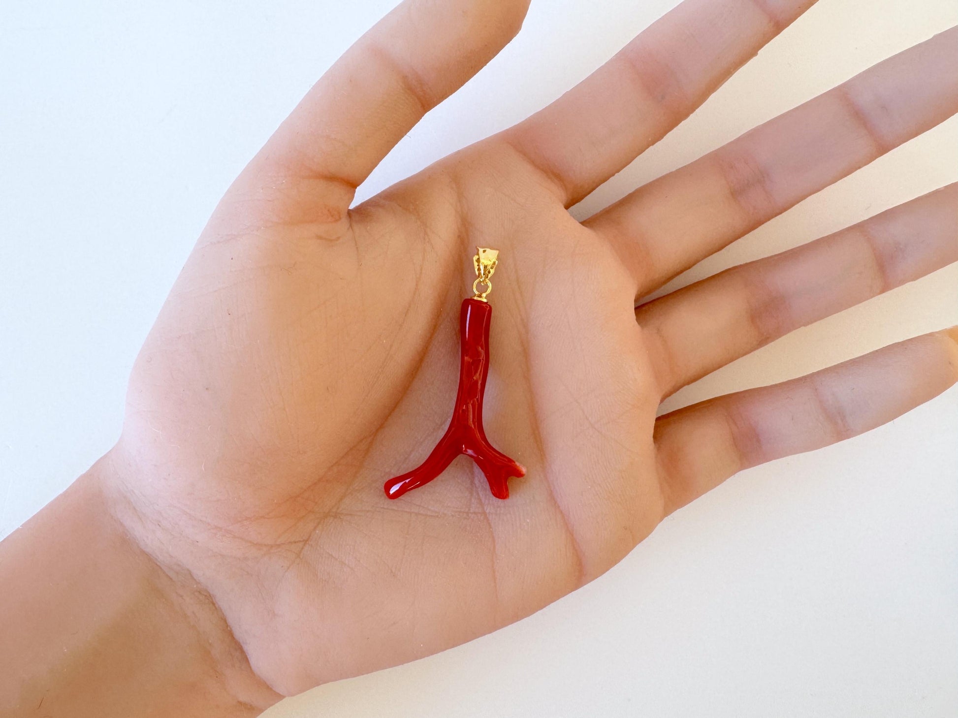 Natural Red Coral Branch Pendant: Oxblood Japanese Aka Coral, Gold Plated Silver Bail, 37mm