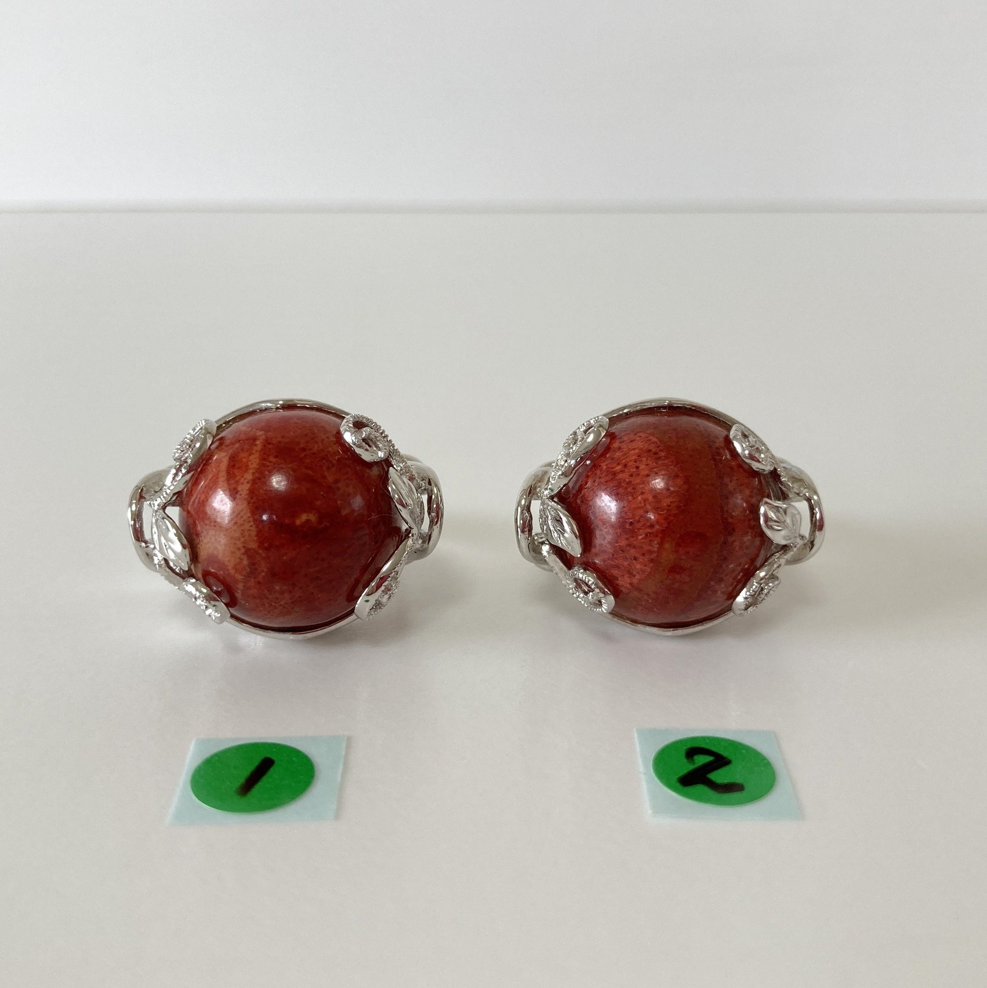 Natural sponge coral half circle silver ring, size is Jp 11, US 6, UK L, IT 51