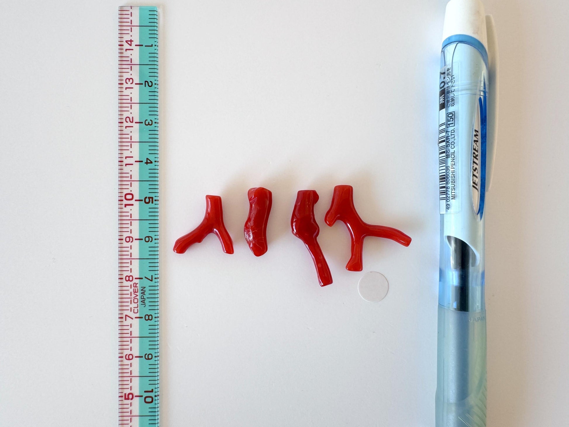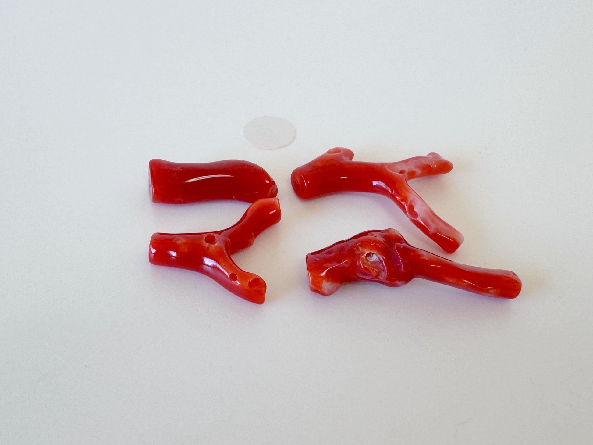 Japanese red(Aka) coral branch set for 4pcs, 16-24mm, Hole on Top, natural red color coral for jewelry making