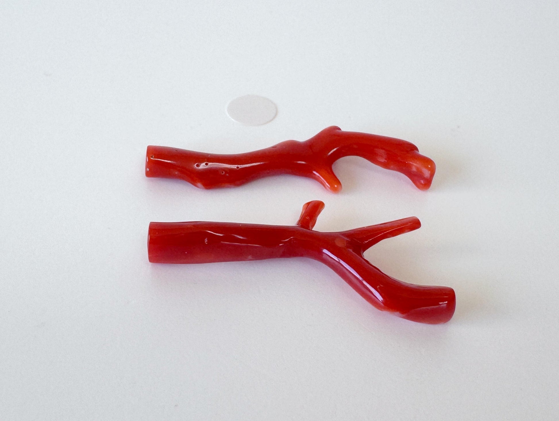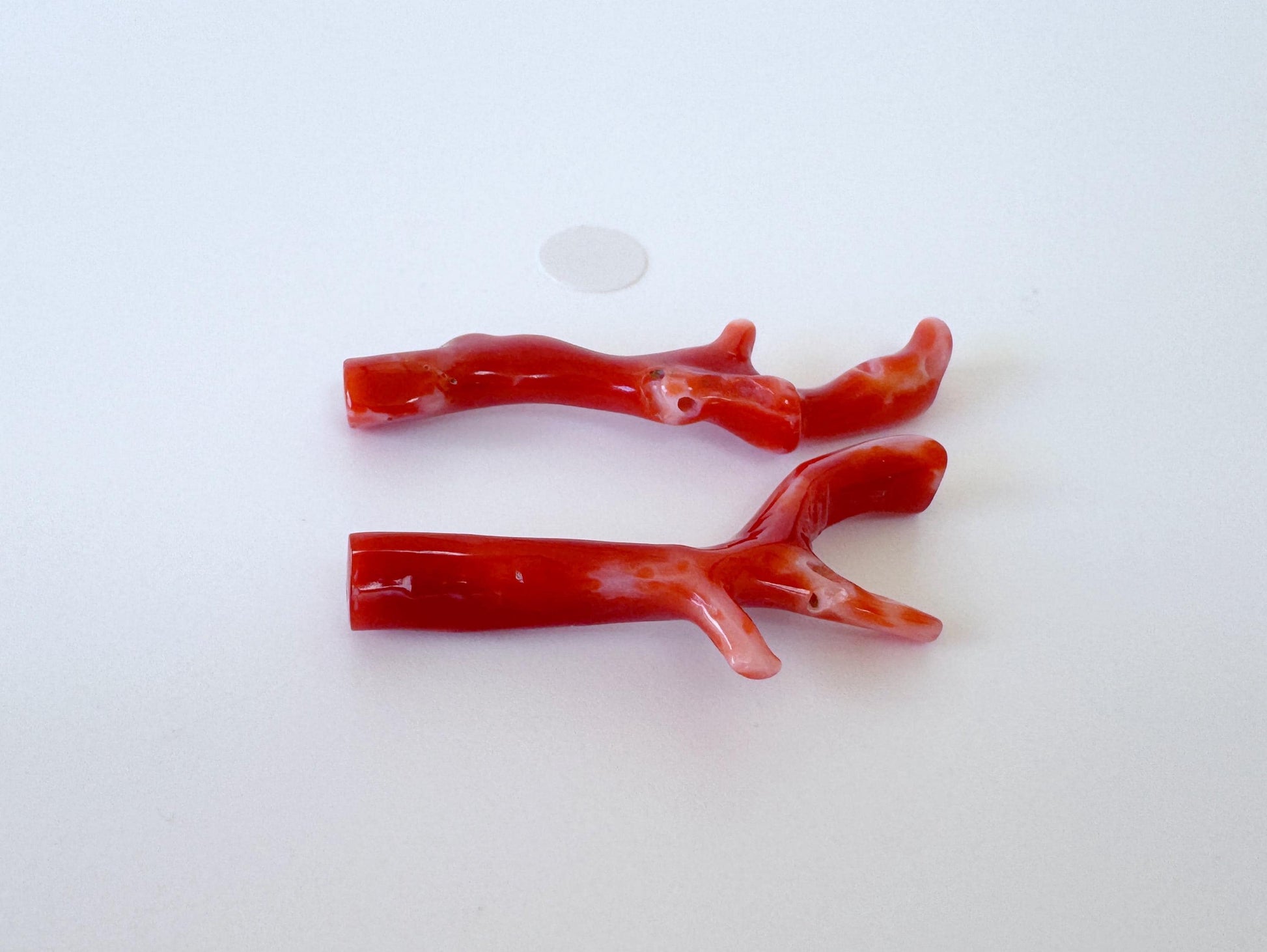 Japanese red(Aka) coral branch set for 2pcs, 35-40mm, Hole on Top, natural red color coral for jewelry making