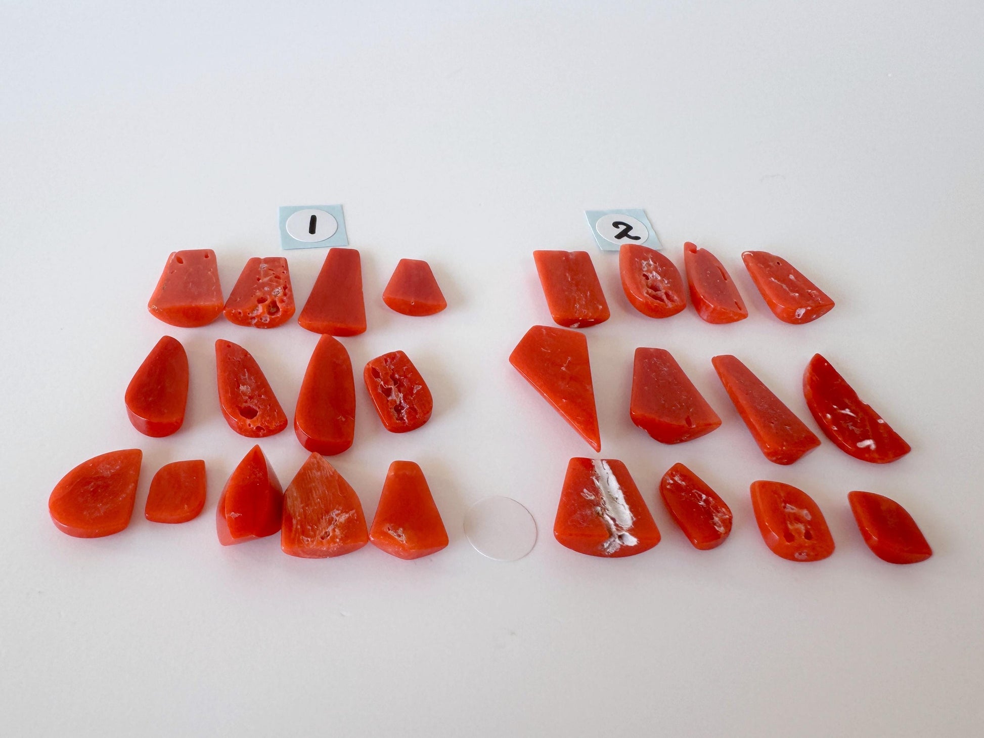 Red Mediterranean Coral Unique Shaped Cabochons: Jewelry Making Supplies (12-13pcs)