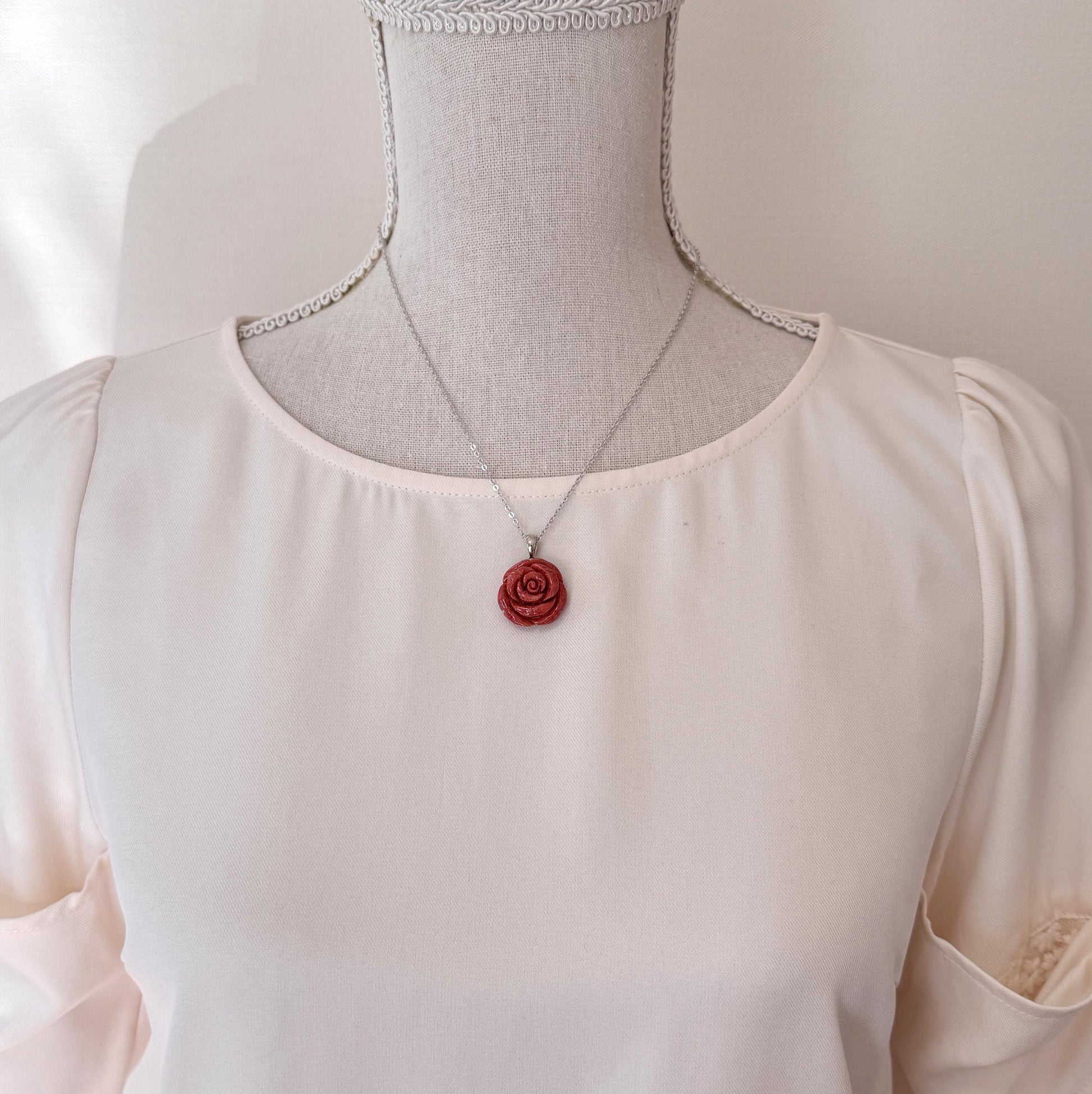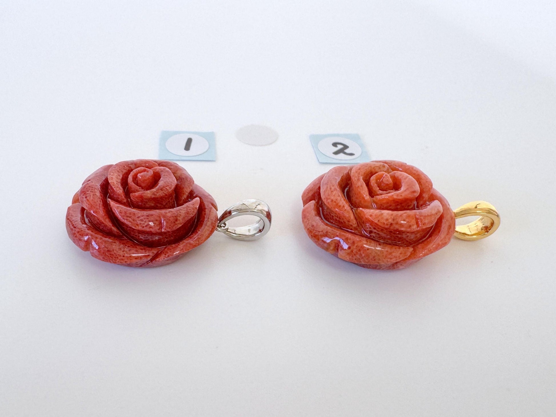 Sponge Coral Rose Pendant, Light Red, 20mm (Brass Bail)